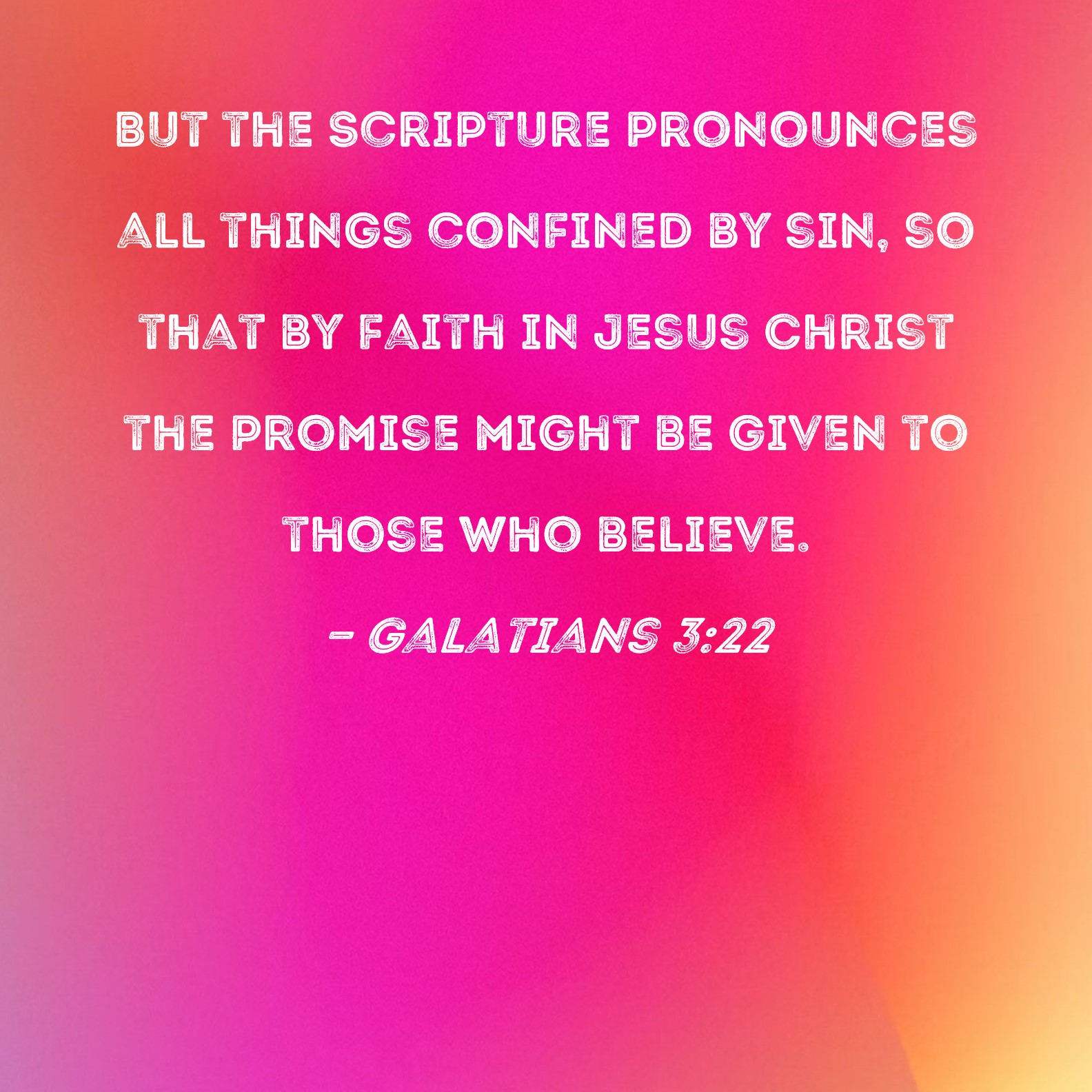 Galatians 3:22 But the Scripture pronounces all things confined by sin, so that by faith in Jesus Christ the promise might be given to those who believe.