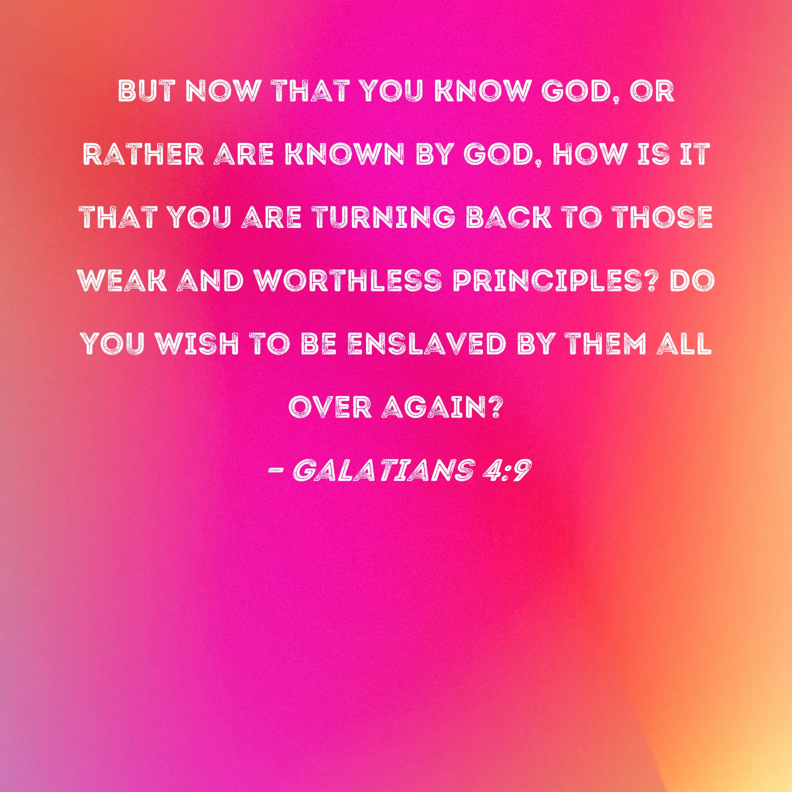 Galatians 4:9 But now that you know God, or rather are known by God, how is it that you are turning back to those weak and worthless principles? Do you wish to be enslaved by them all over again?