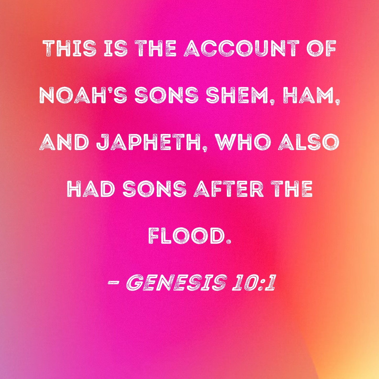 Genesis 10:1 This is the account of Noah's sons Shem, Ham, and Japheth, who also had sons after the flood.