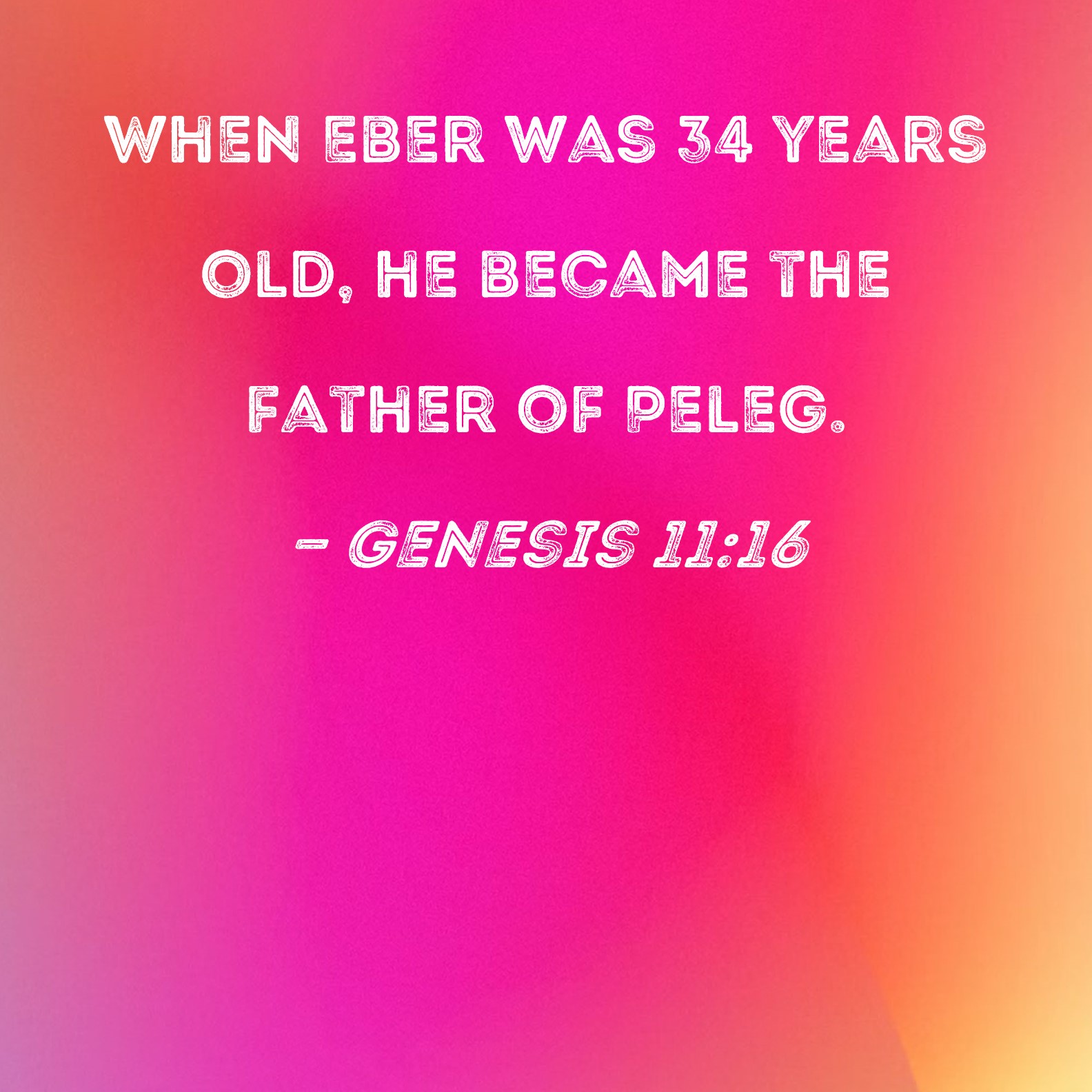 Genesis 11:16 When Eber was 34 years old, he became the father of Peleg.