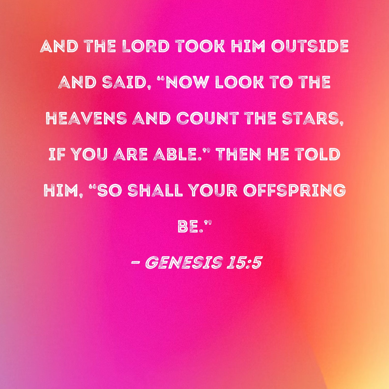 Genesis 15:5 And the LORD took him outside and said, "Now look to the heavens and count the stars, if you are able." Then He told him, "So shall your offspring be."