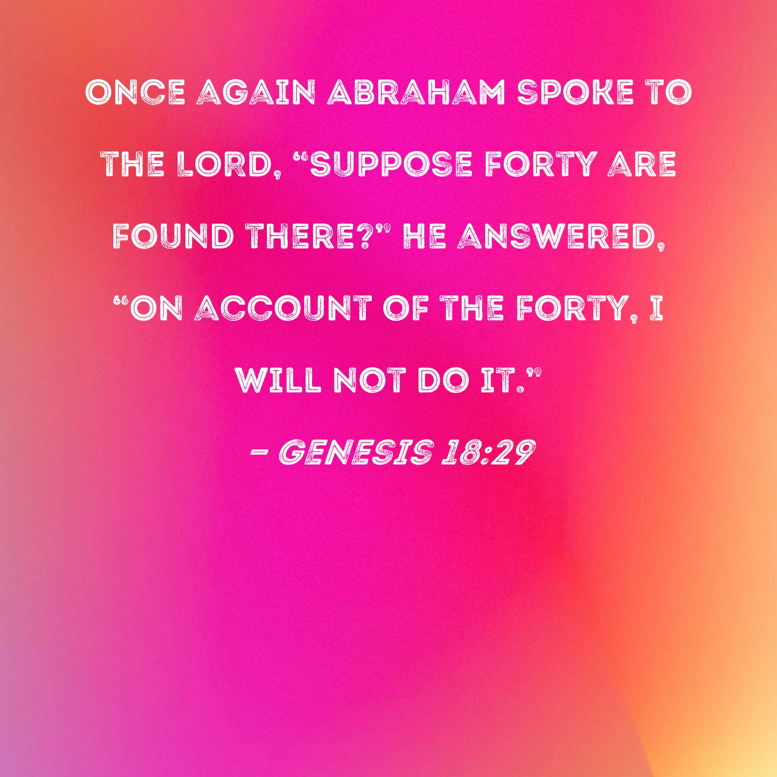 Genesis 18:29 Once again Abraham spoke to the LORD, "Suppose forty are found there?" He answered, "On account of the forty, I will not do it."
