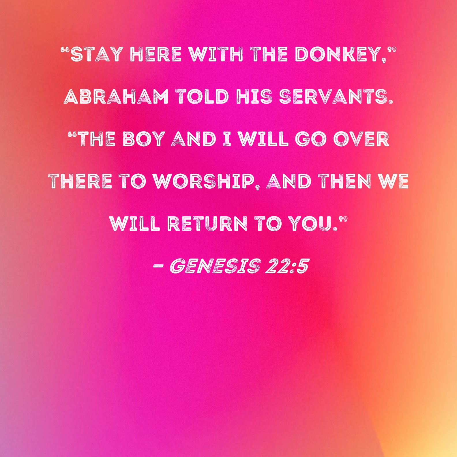 Genesis 22:5 "Stay here with the donkey," Abraham told his servants. "The boy and I will go over there to worship, and then we will return to you."