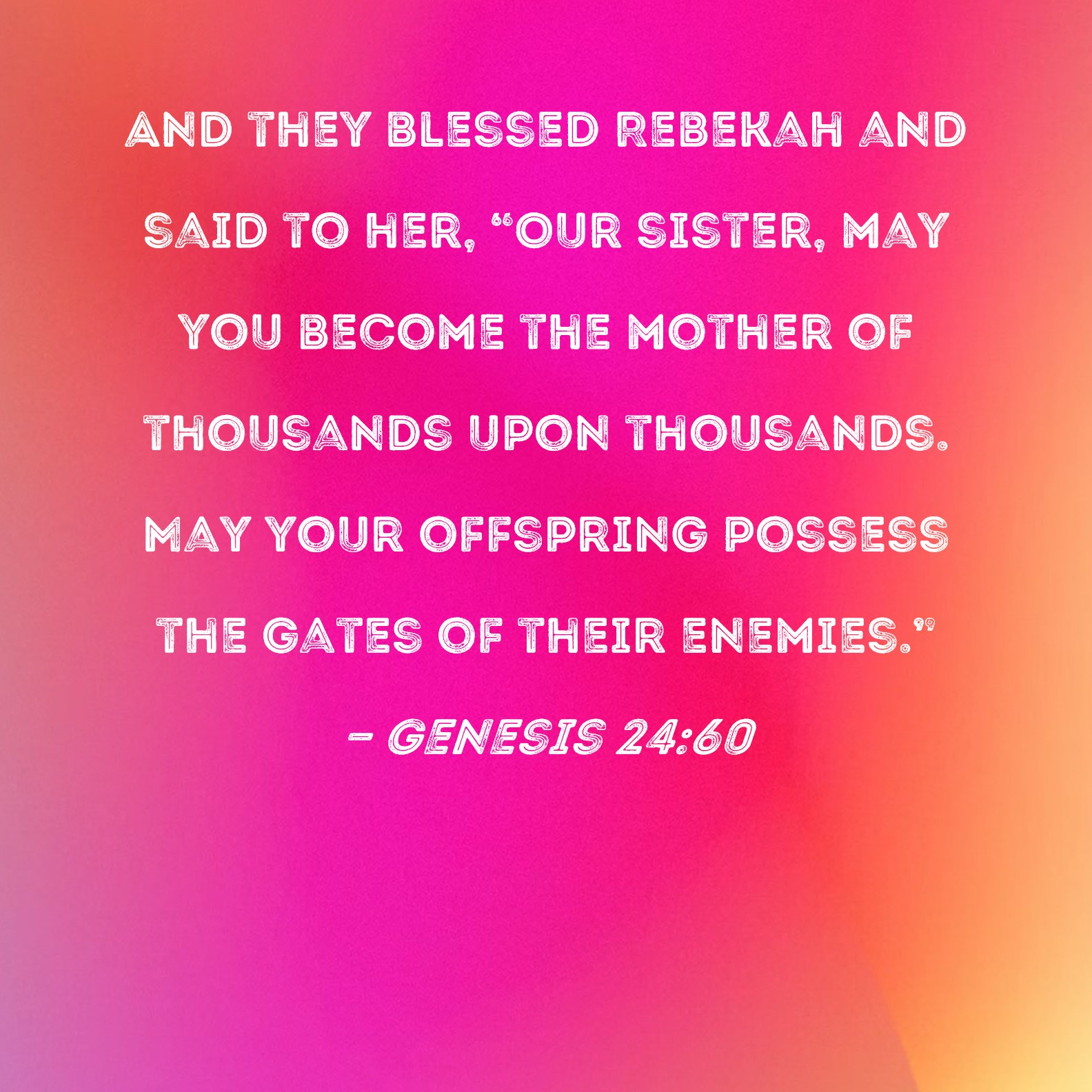 Genesis 24:60 And they blessed Rebekah and said to her, "Our sister, may you become the mother of thousands upon thousands. May your offspring possess the gates of their enemies."