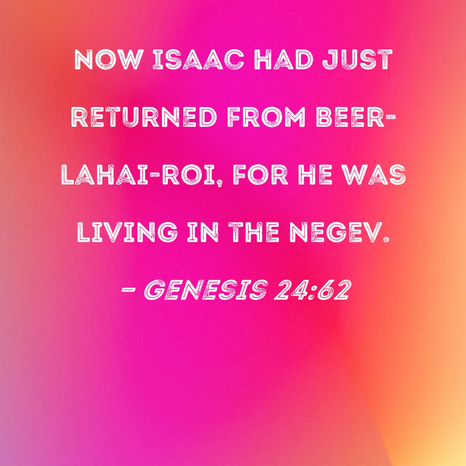 Genesis 24:62 Now Isaac had just returned from Beer-lahai-roi, for he was living in the Negev.