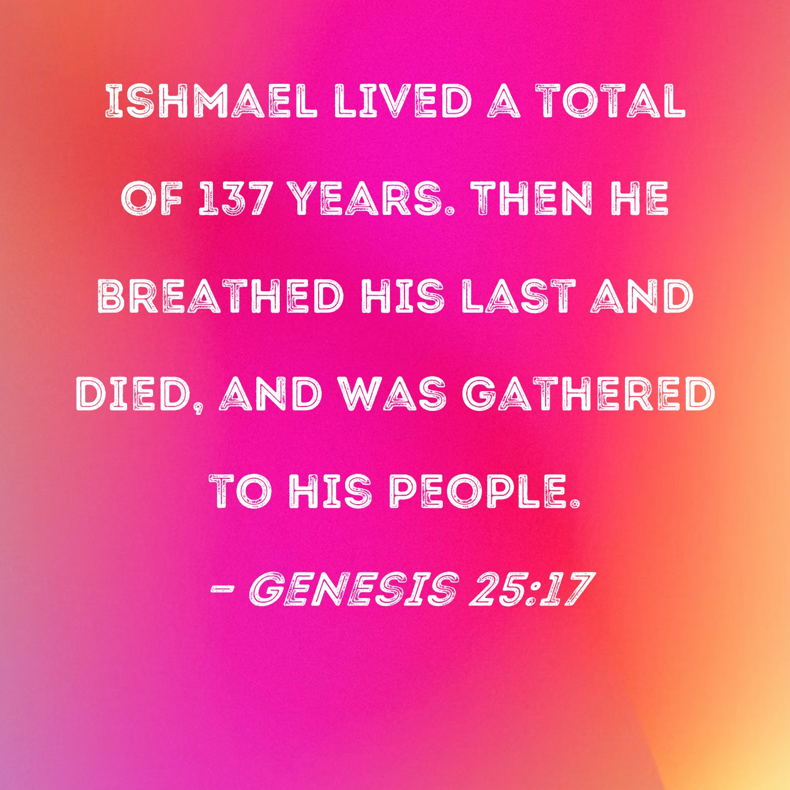 Genesis 25:17 Ishmael lived a total of 137 years. Then he breathed his last and died, and was gathered to his people.