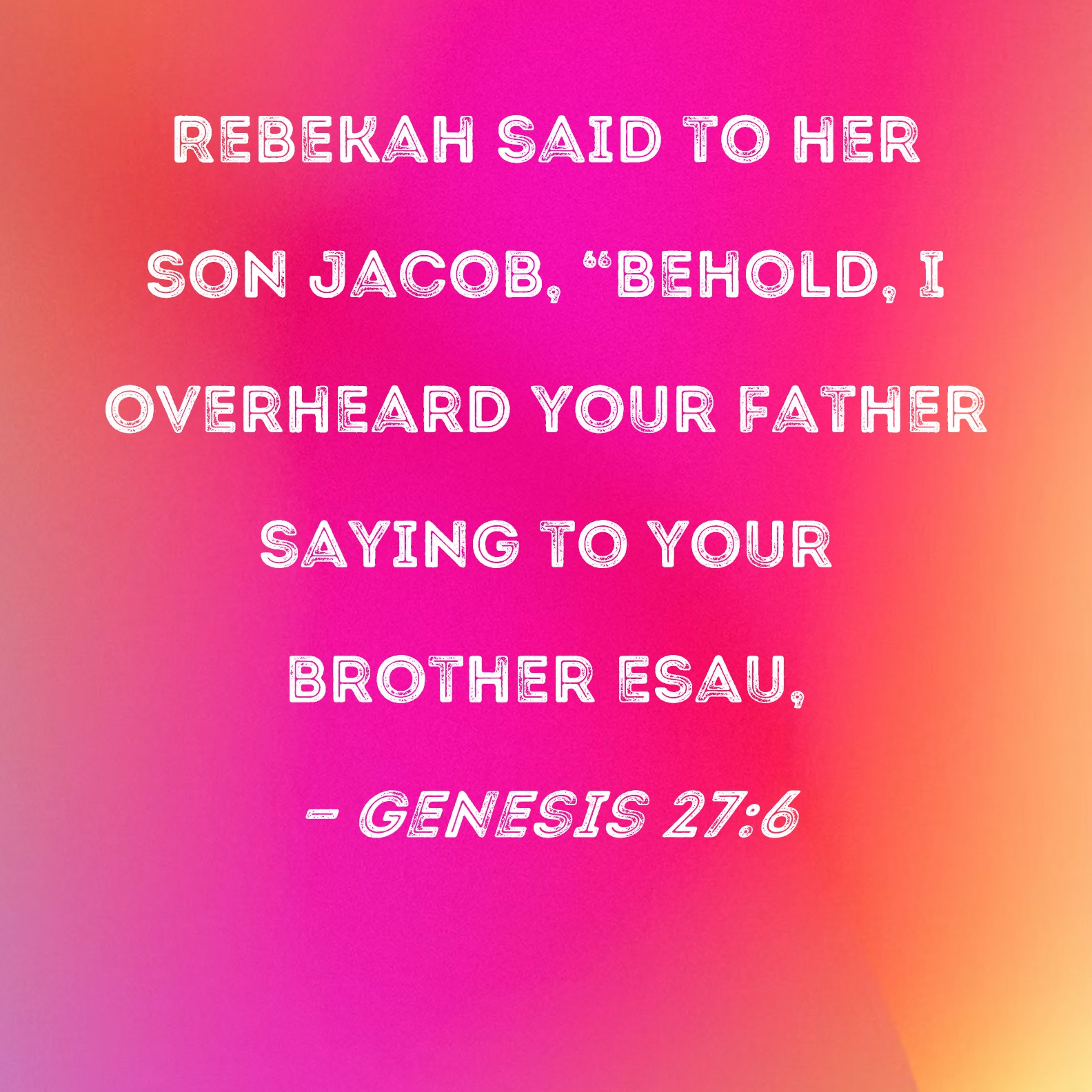 Genesis 27:6 Rebekah said to her son Jacob, "Behold, I overheard your father saying to your brother Esau,