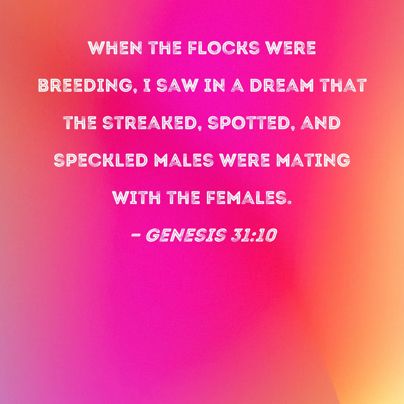 Genesis 31:10 When the flocks were breeding, I saw in a dream that the streaked, spotted, and speckled males were mating with the females.