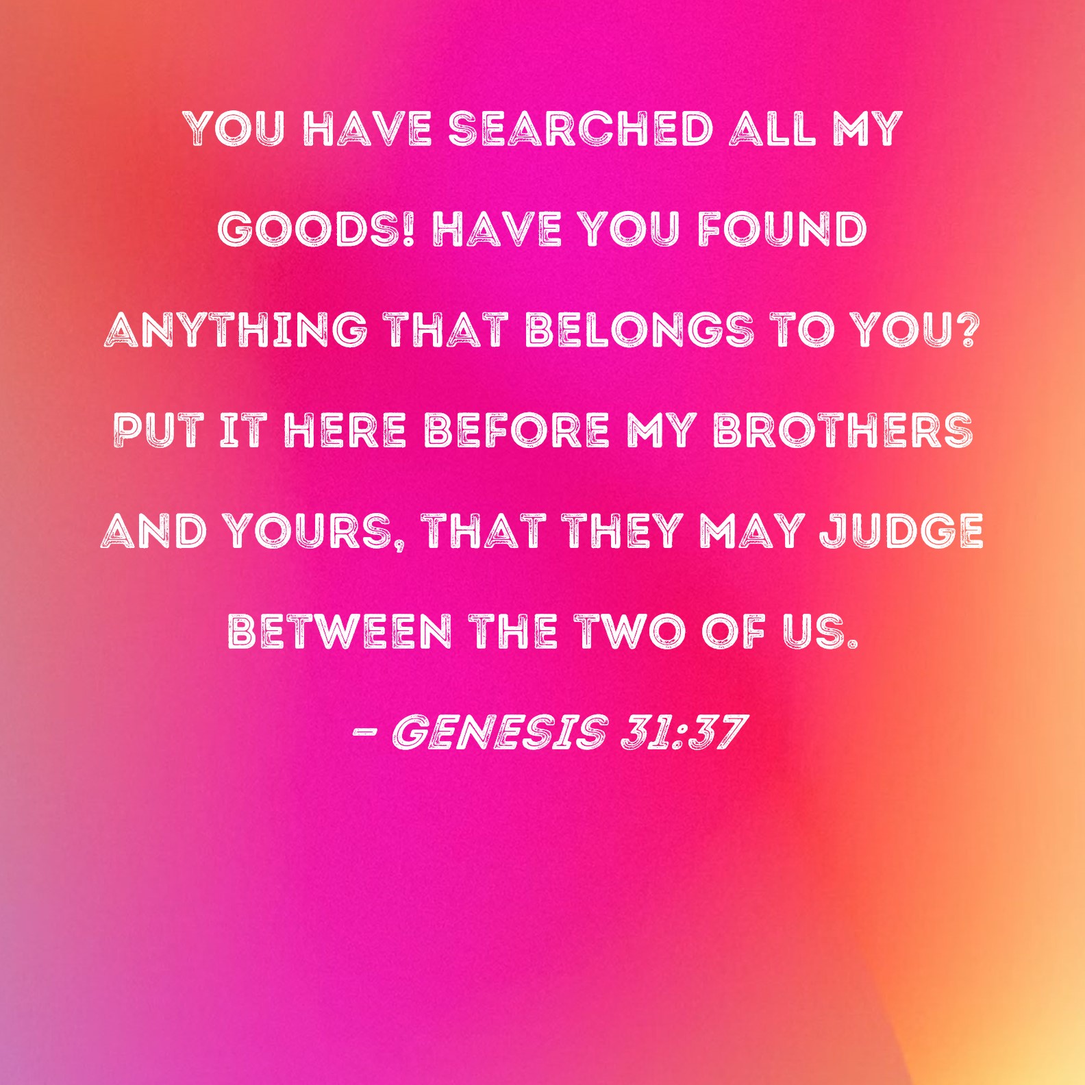Genesis 31:37 You have searched all my goods! Have you found anything that belongs to you? Put it here before my brothers and yours, that they may judge between the two of us.