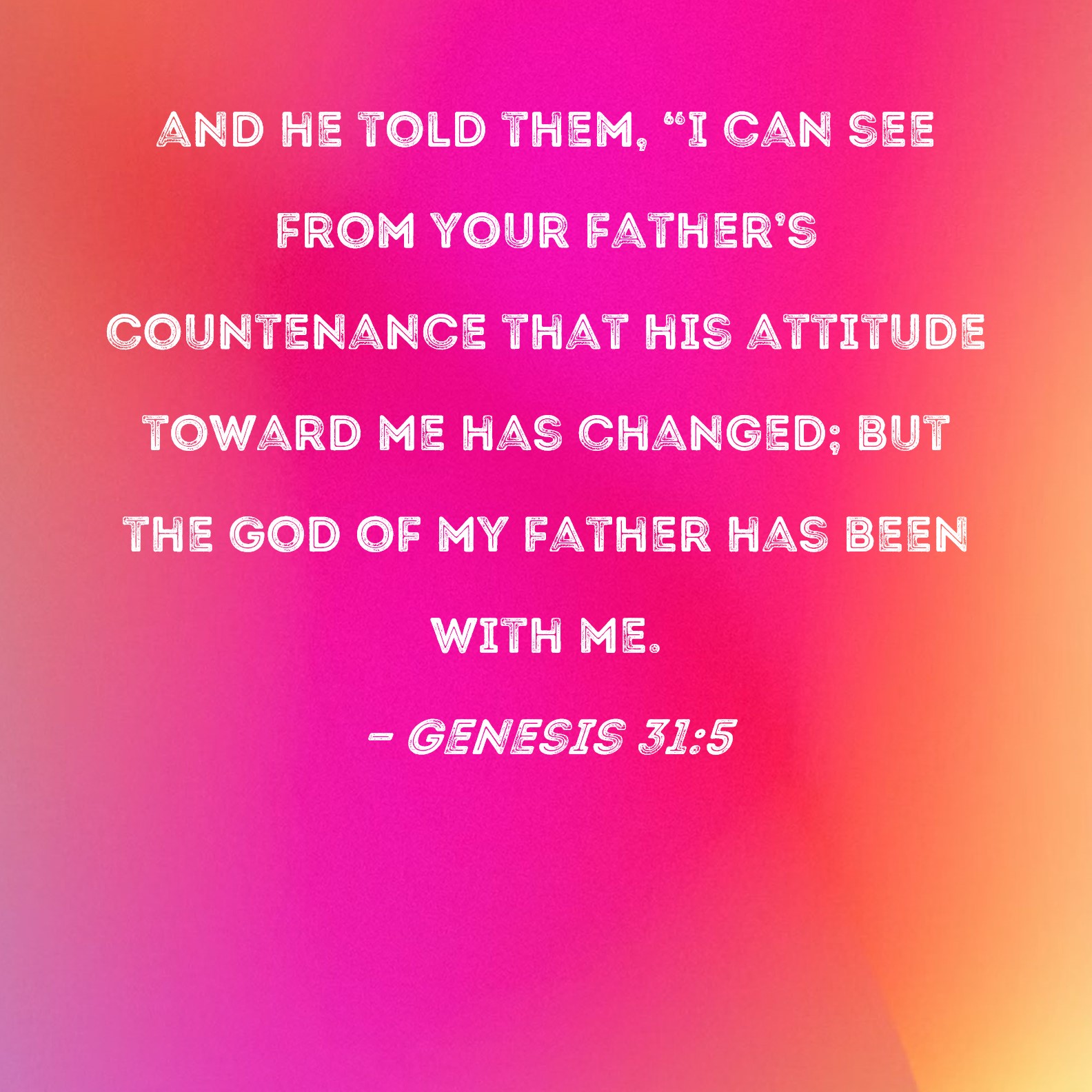 Genesis 31:5 and he told them, "I can see from your father's countenance that his attitude toward me has changed; but the God of my father has been with me.