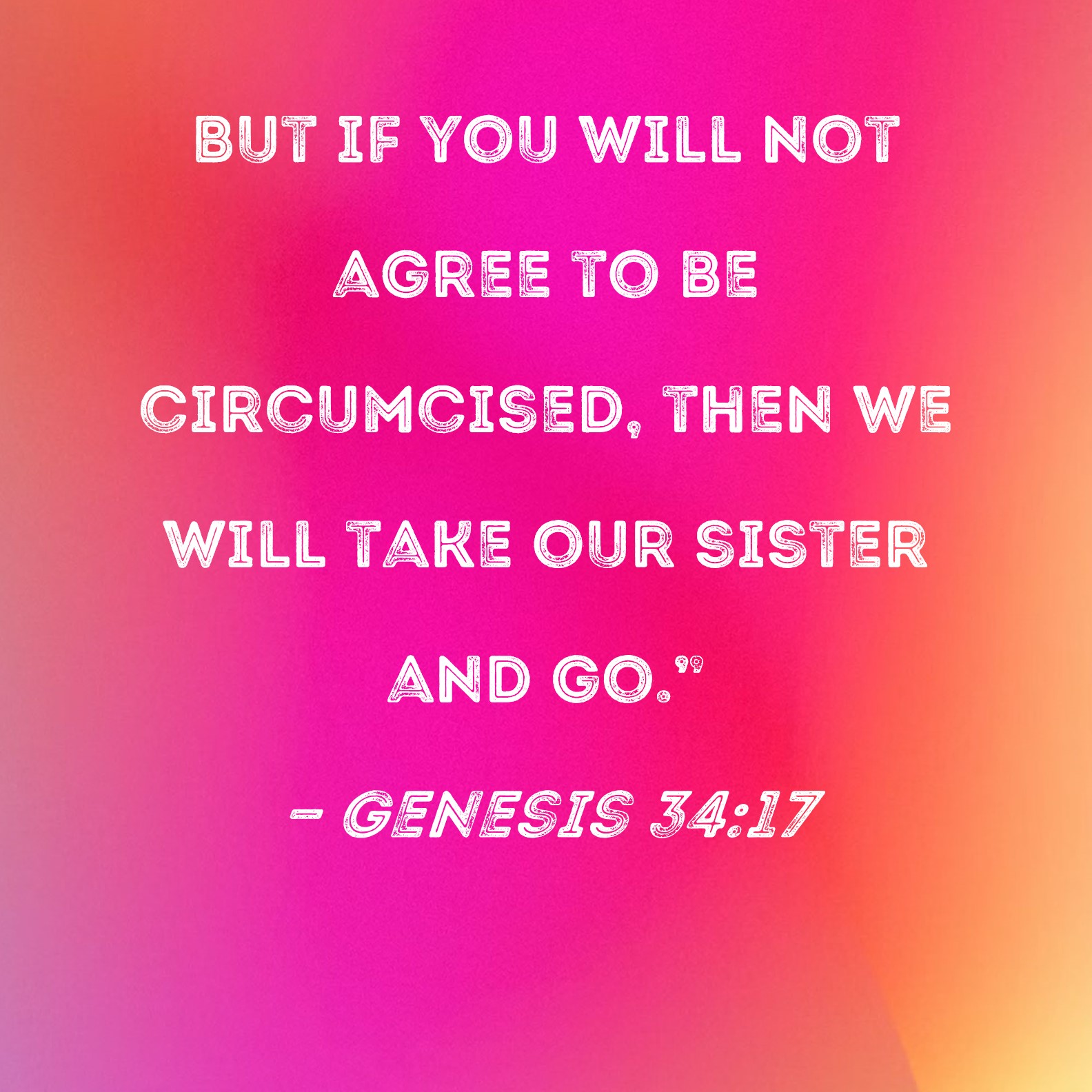 Genesis 34:17 But if you will not agree to be circumcised, then we will take our sister and go."