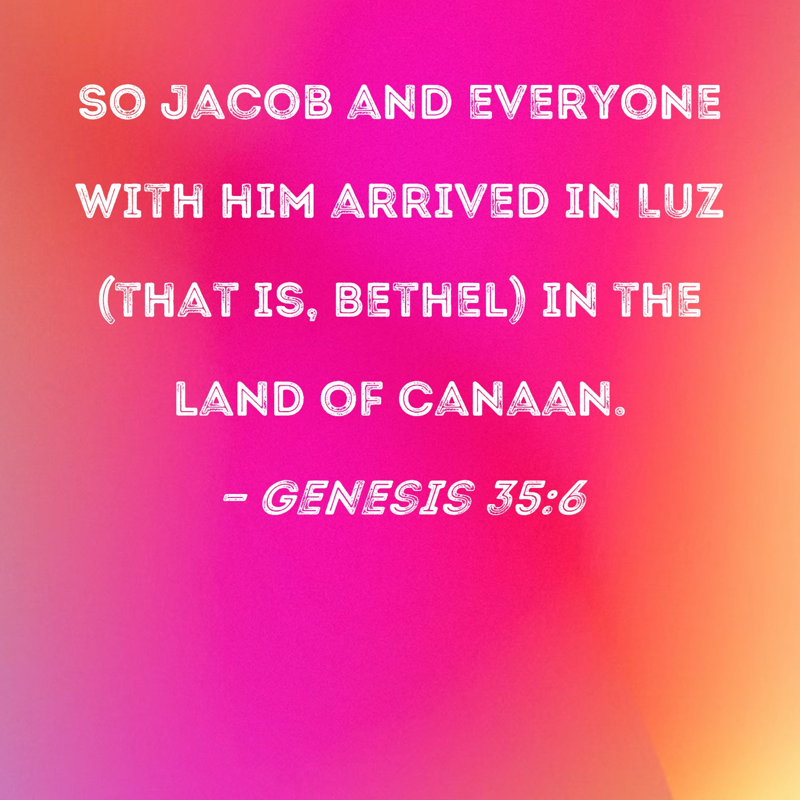Genesis 35:6 So Jacob and everyone with him arrived in Luz (that is, Bethel) in the land of Canaan.