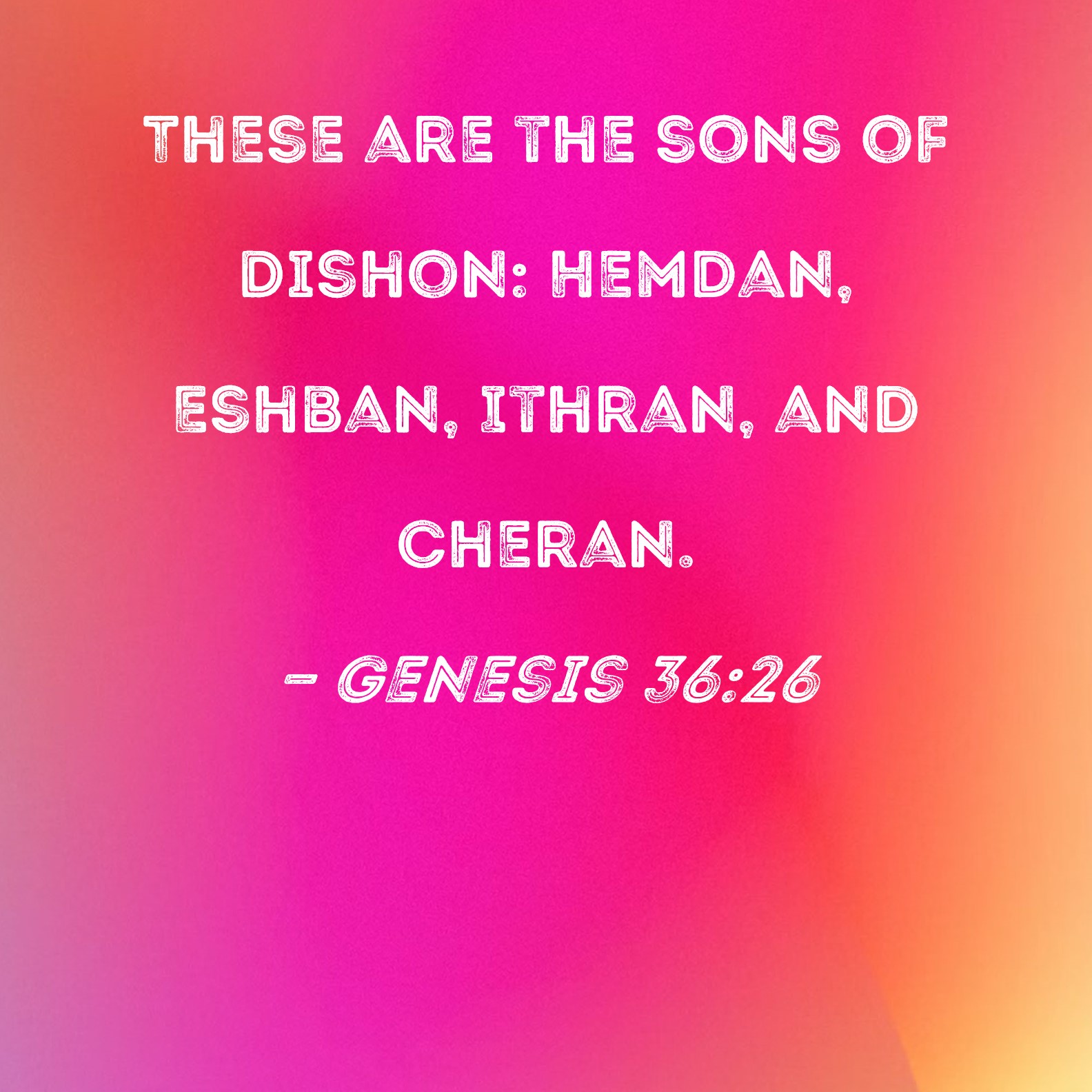 Genesis 36:26 These are the sons of Dishon: Hemdan, Eshban, Ithran, and Cheran.
