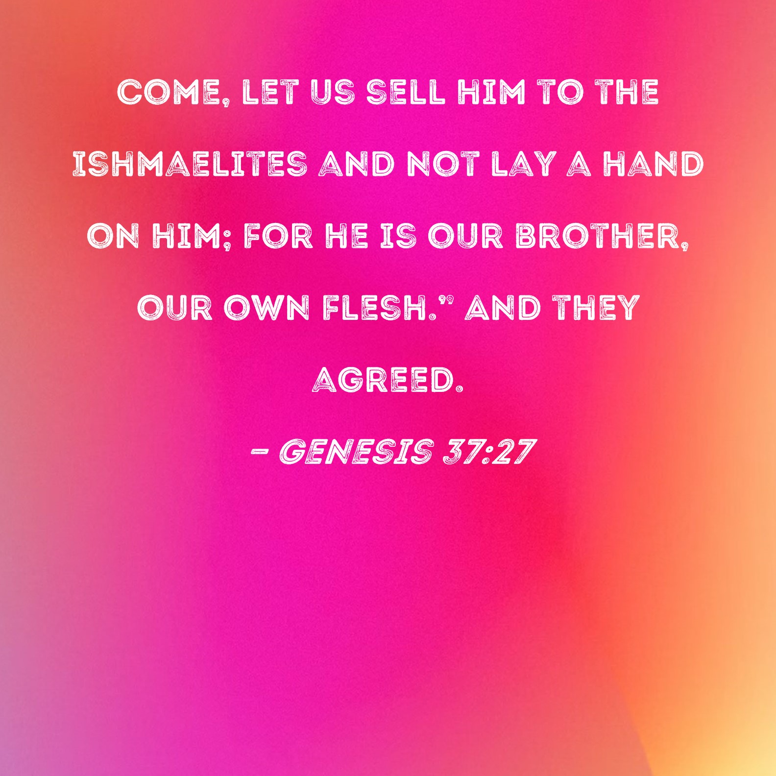 Genesis 37:27 Come, let us sell him to the Ishmaelites and not lay a hand on him; for he is our brother, our own flesh." And they agreed.