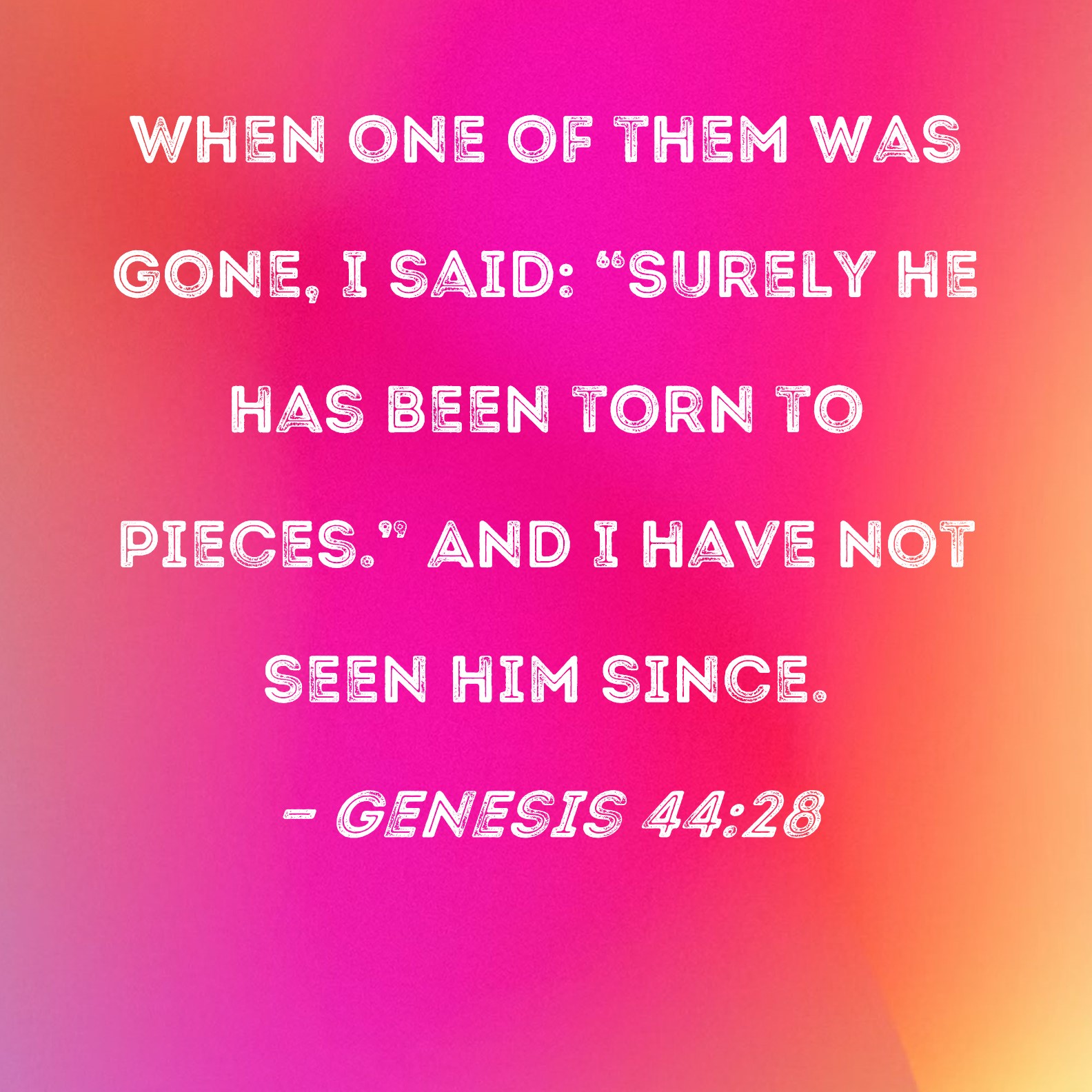 Genesis 44:28 When one of them was gone, I said: "Surely he has been torn to pieces." And I have not seen him since.