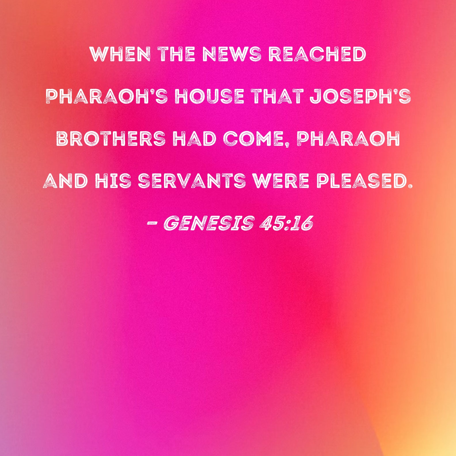 Genesis 45:16 When the news reached Pharaoh's house that Joseph's brothers had come, Pharaoh and his servants were pleased.