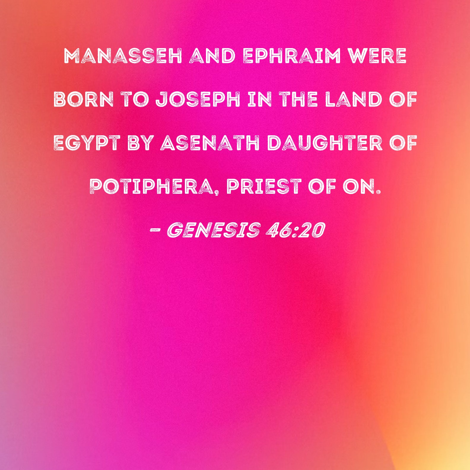 Genesis 46:20 Manasseh and Ephraim were born to Joseph in the land of Egypt by Asenath daughter of Potiphera, priest of On.