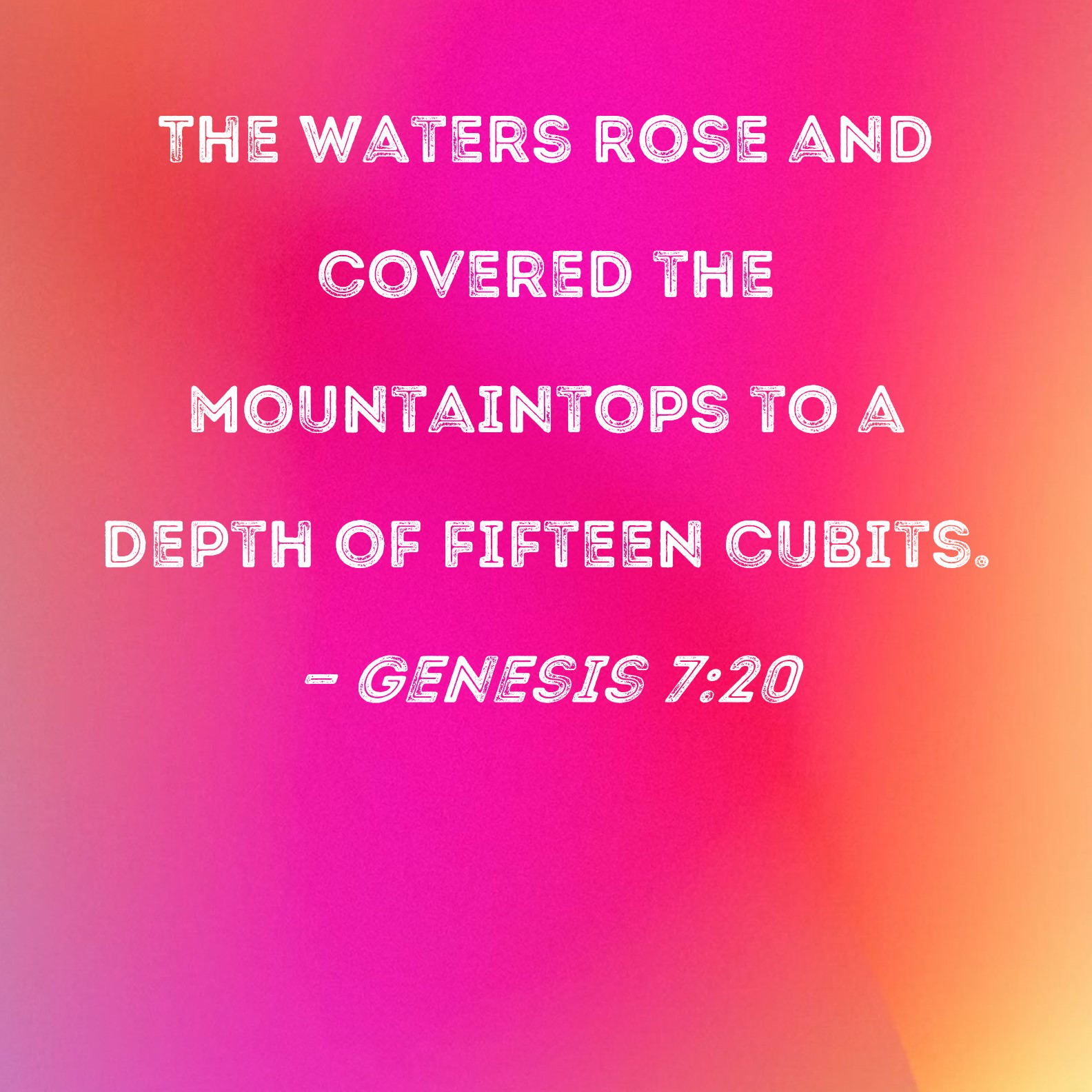 Genesis 7:20 The waters rose and covered the mountaintops to a depth of fifteen cubits.