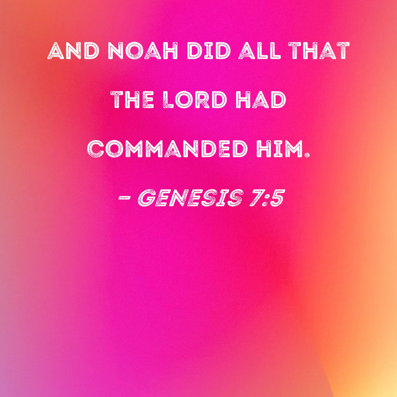 Genesis 7:5 And Noah did all that the LORD had commanded him.