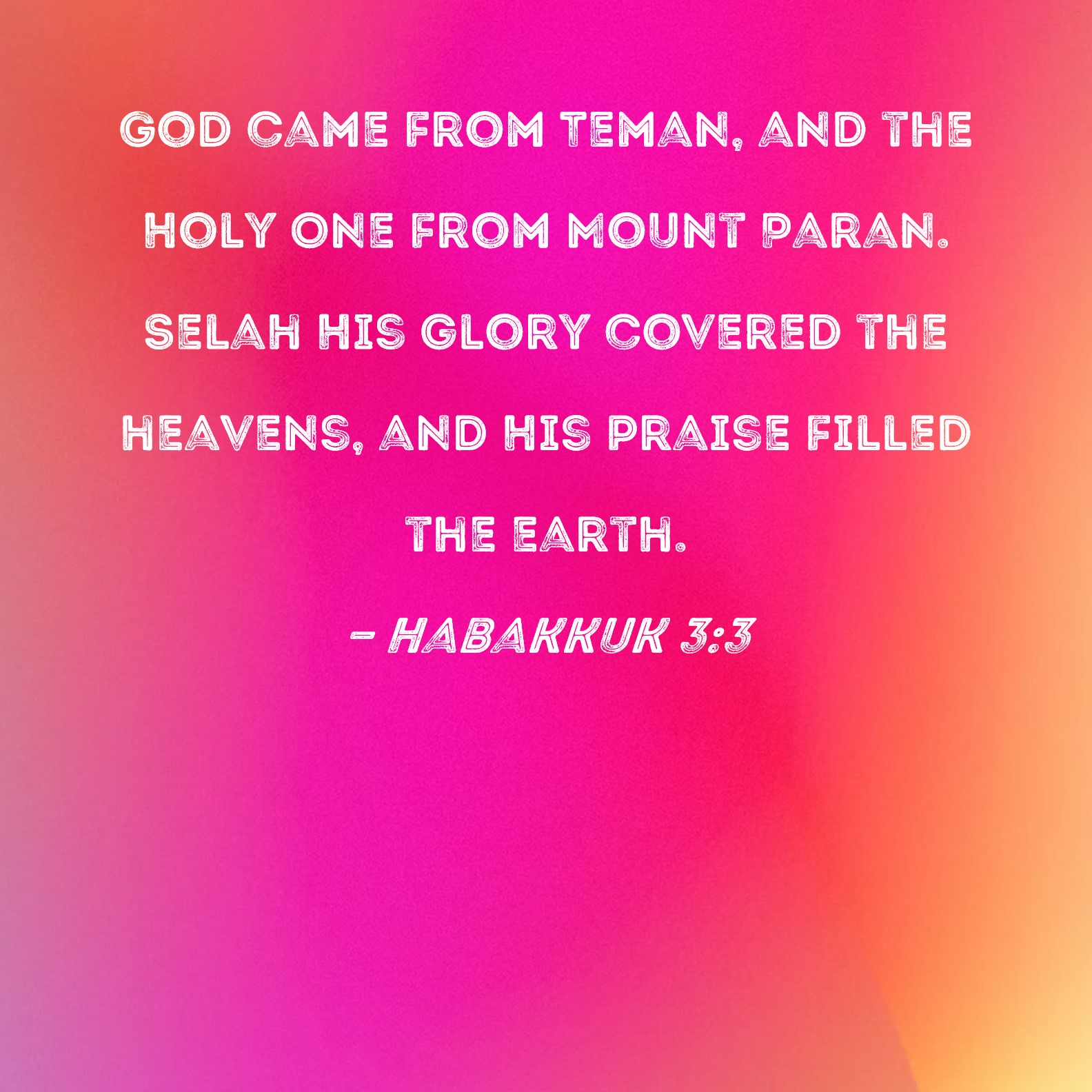 Habakkuk 3:3 God came from Teman, and the Holy One from Mount Paran. Selah His glory covered the heavens, and His praise filled the earth.