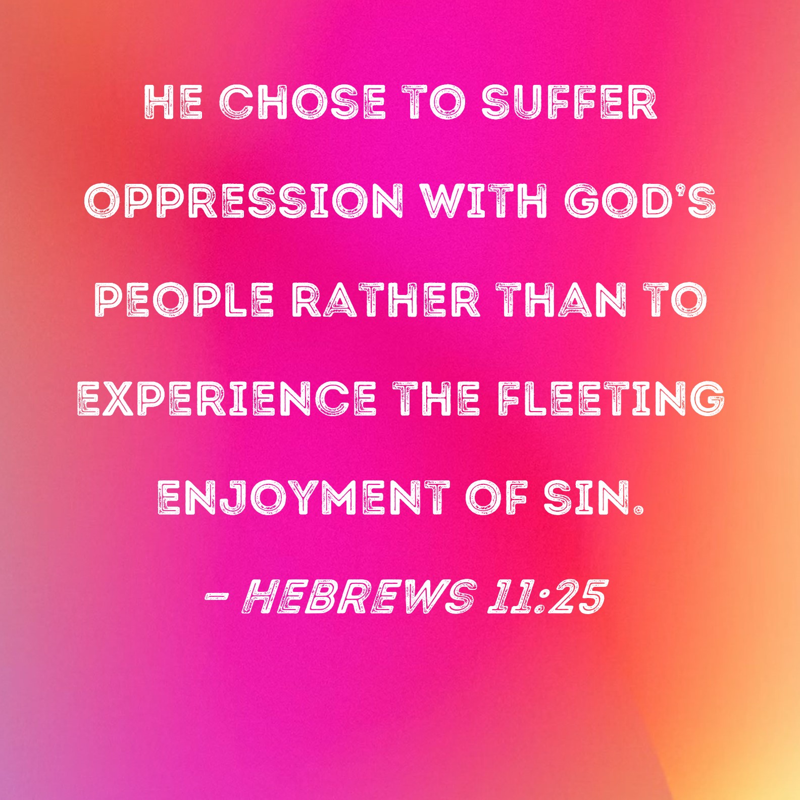 Hebrews 11:25 He chose to suffer oppression with God's people rather than to experience the fleeting enjoyment of sin.