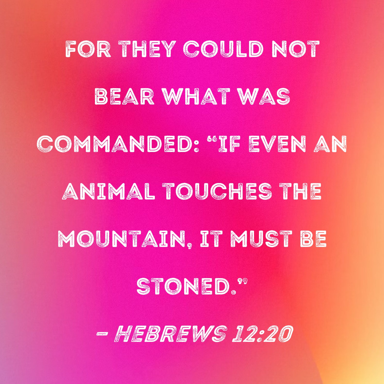 Hebrews 12:20 For they could not bear what was commanded: "If even an animal touches the mountain, it must be stoned."