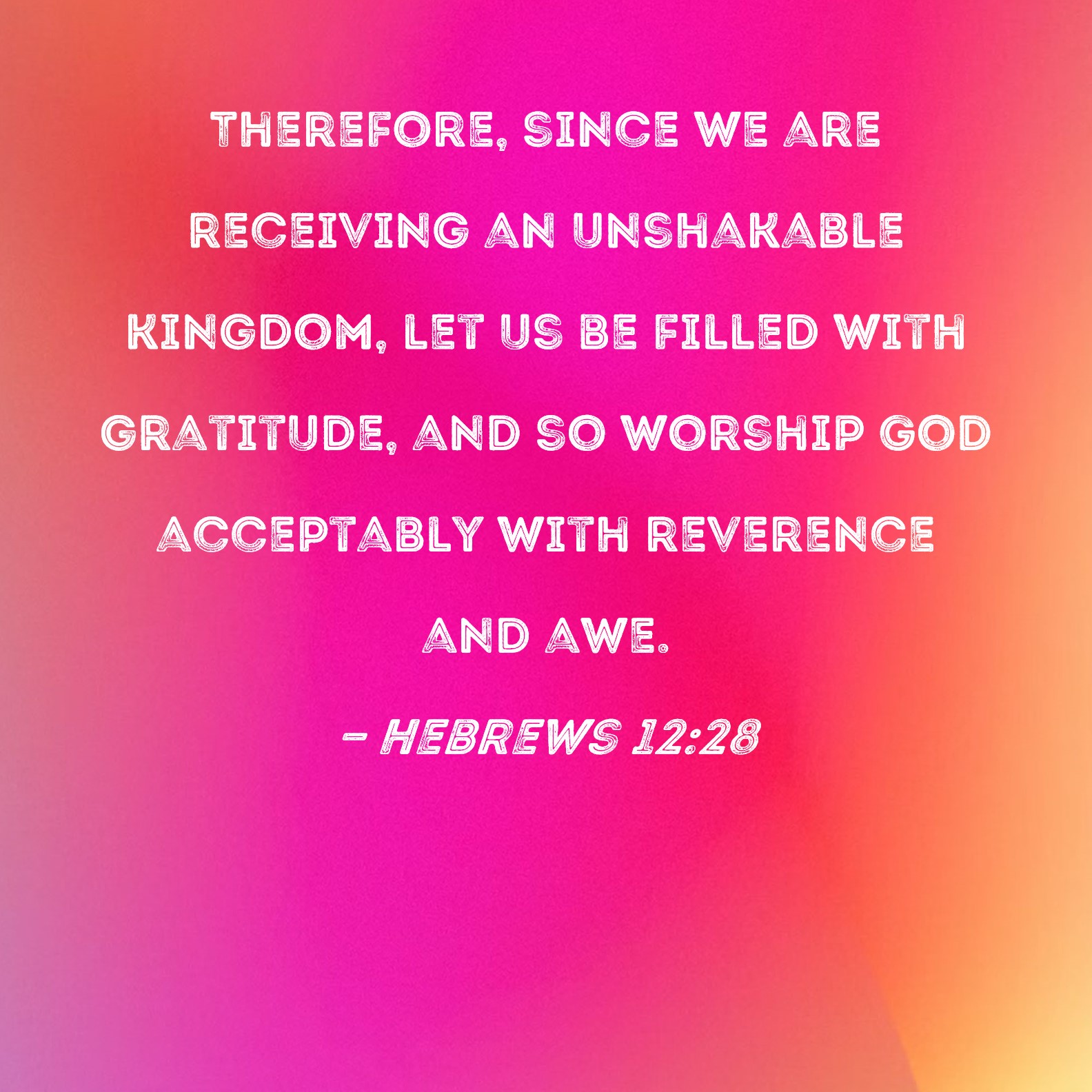 Hebrews 12:28 Therefore, since we are receiving an unshakable kingdom, let us be filled with gratitude, and so worship God acceptably with reverence and awe.