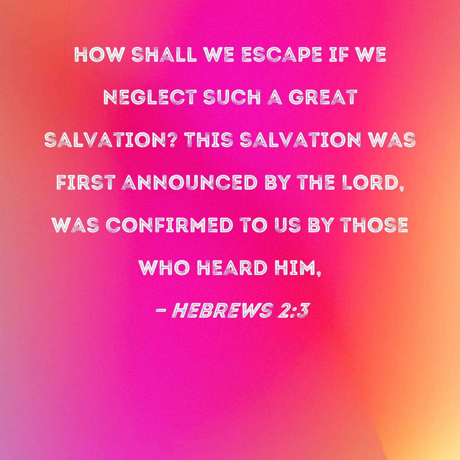Hebrews 2:3 how shall we escape if we neglect such a great salvation? This salvation was first announced by the Lord, was confirmed to us by those who heard Him,