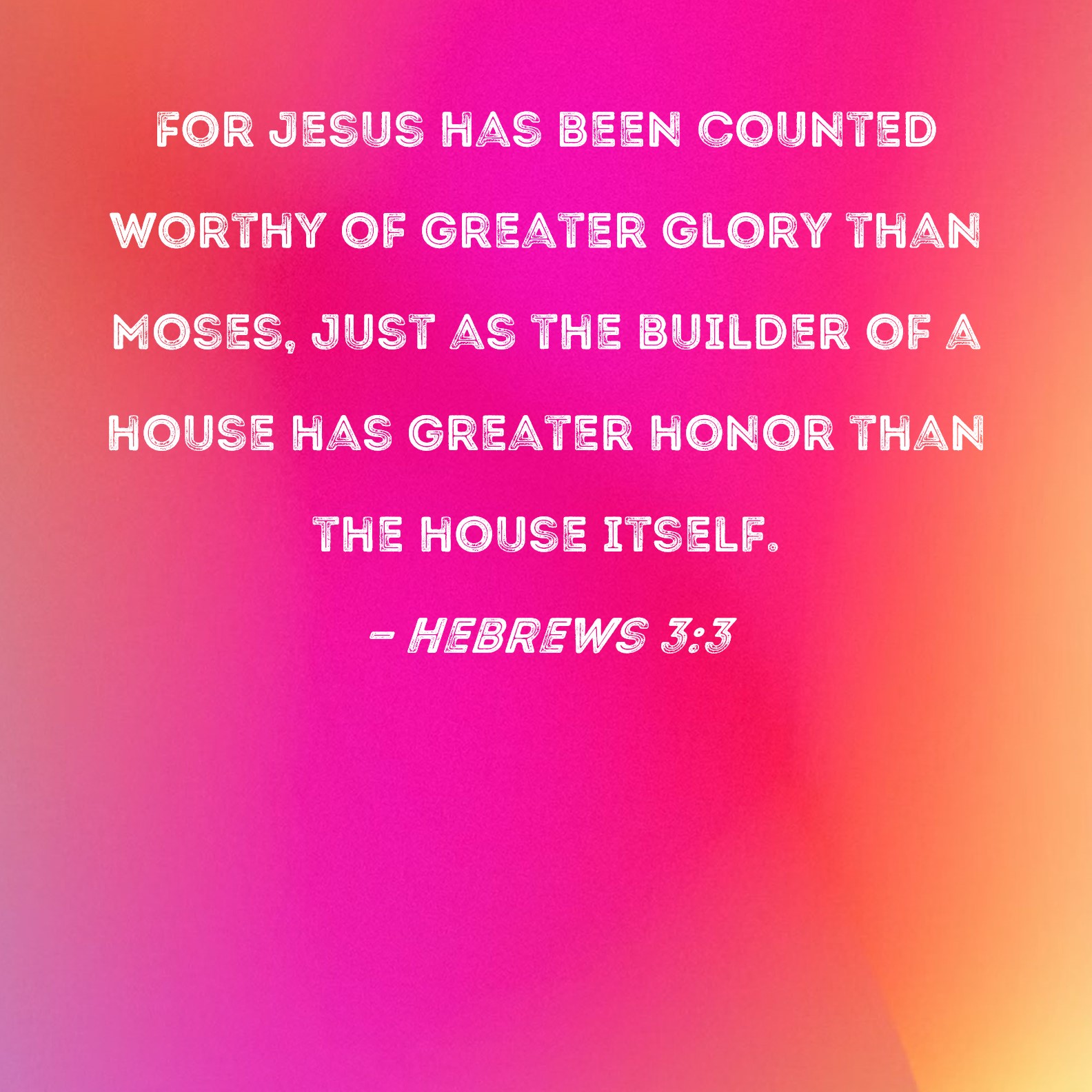 Hebrews 3:3 For Jesus has been counted worthy of greater glory than Moses, just as the builder of a house has greater honor than the house itself.