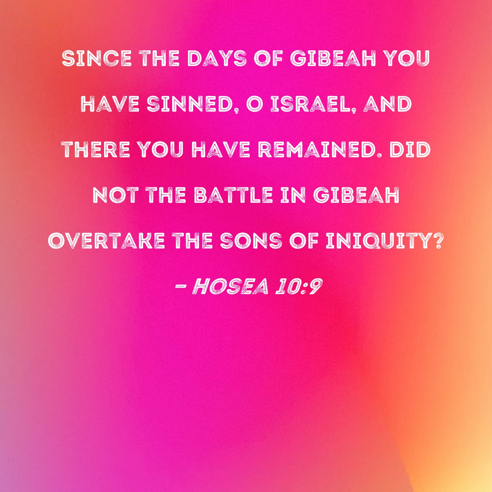 Hosea 10:9 Since the days of Gibeah you have sinned, O Israel, and there you have remained. Did not the battle in Gibeah overtake the sons of iniquity?