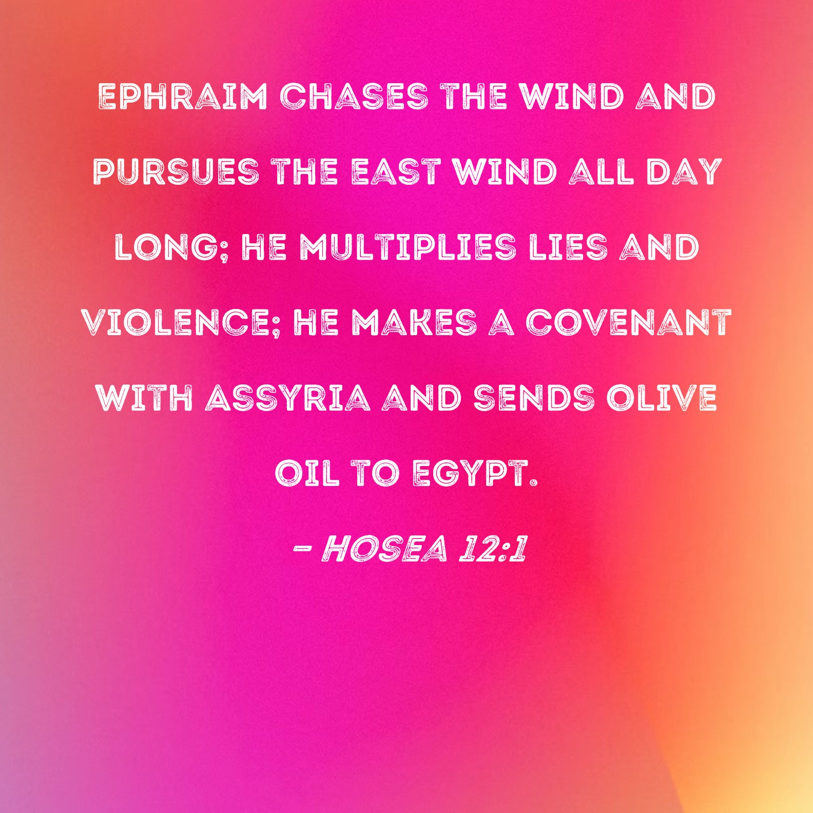 WEB:  Ephraim feeds on wind, and chases the east wind. He continually multiplies lies and desolation. They make a covenant with Assyria, and oil is carried into Egypt.