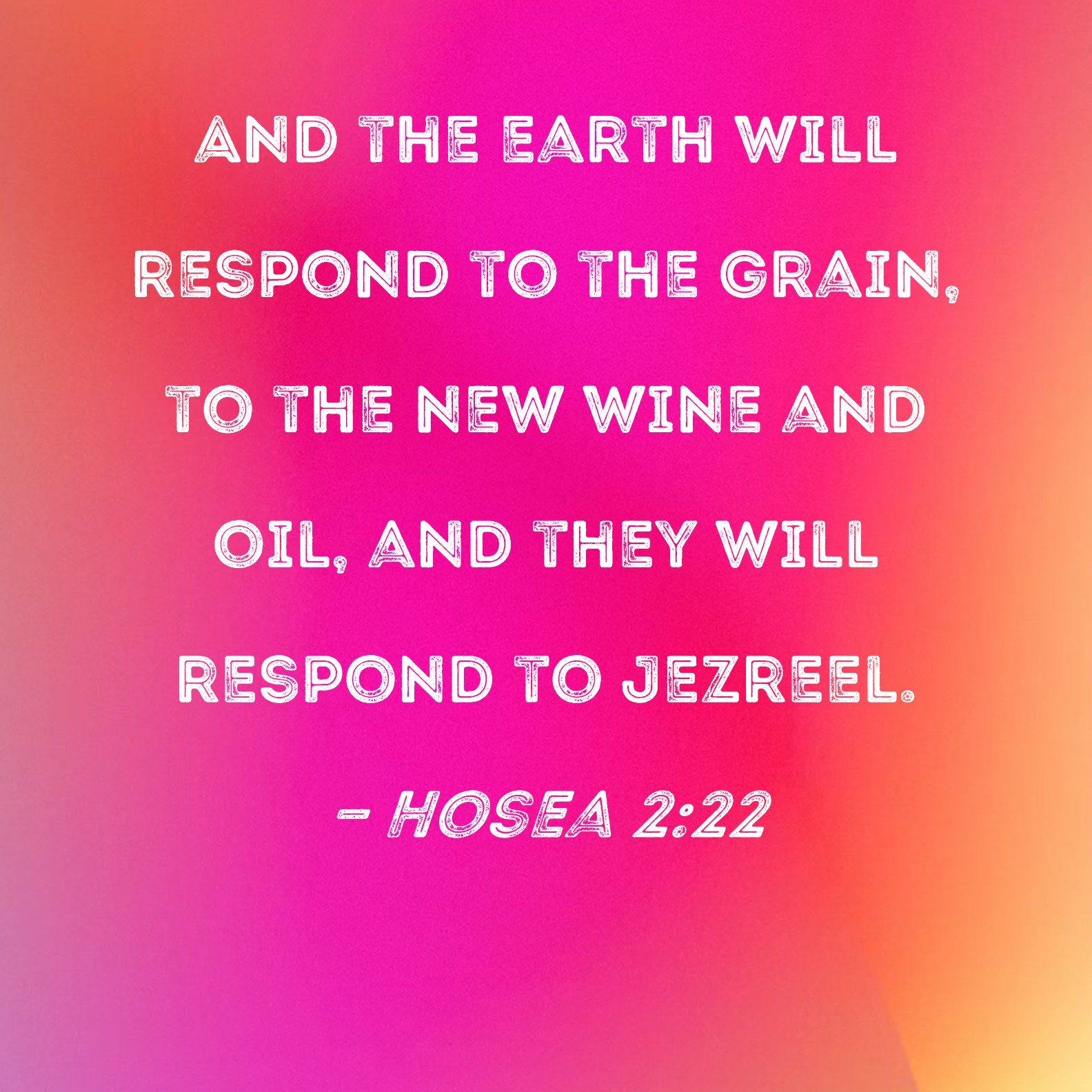 Hosea 2:22 And the earth will respond to the grain, to the new wine and oil, and they will respond to Jezreel.