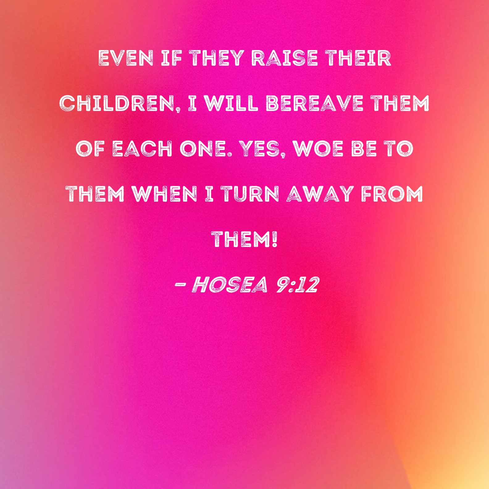 Hosea 9:12 Even if they raise their children, I will bereave them of each one. Yes, woe be to them when I turn away from them!