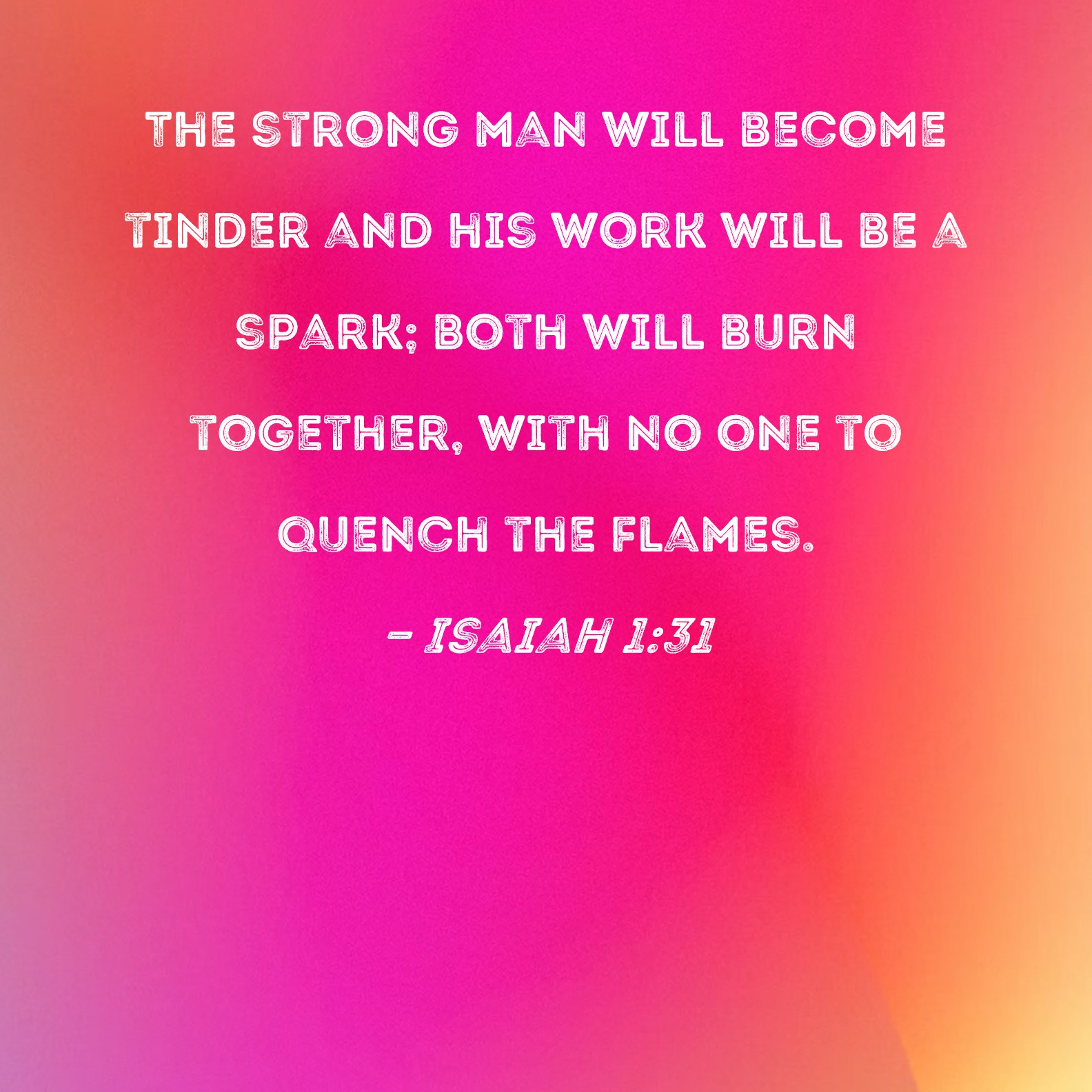 Isaiah 1:31 The strong man will become tinder and his work will be a spark; both will burn together, with no one to quench the flames.