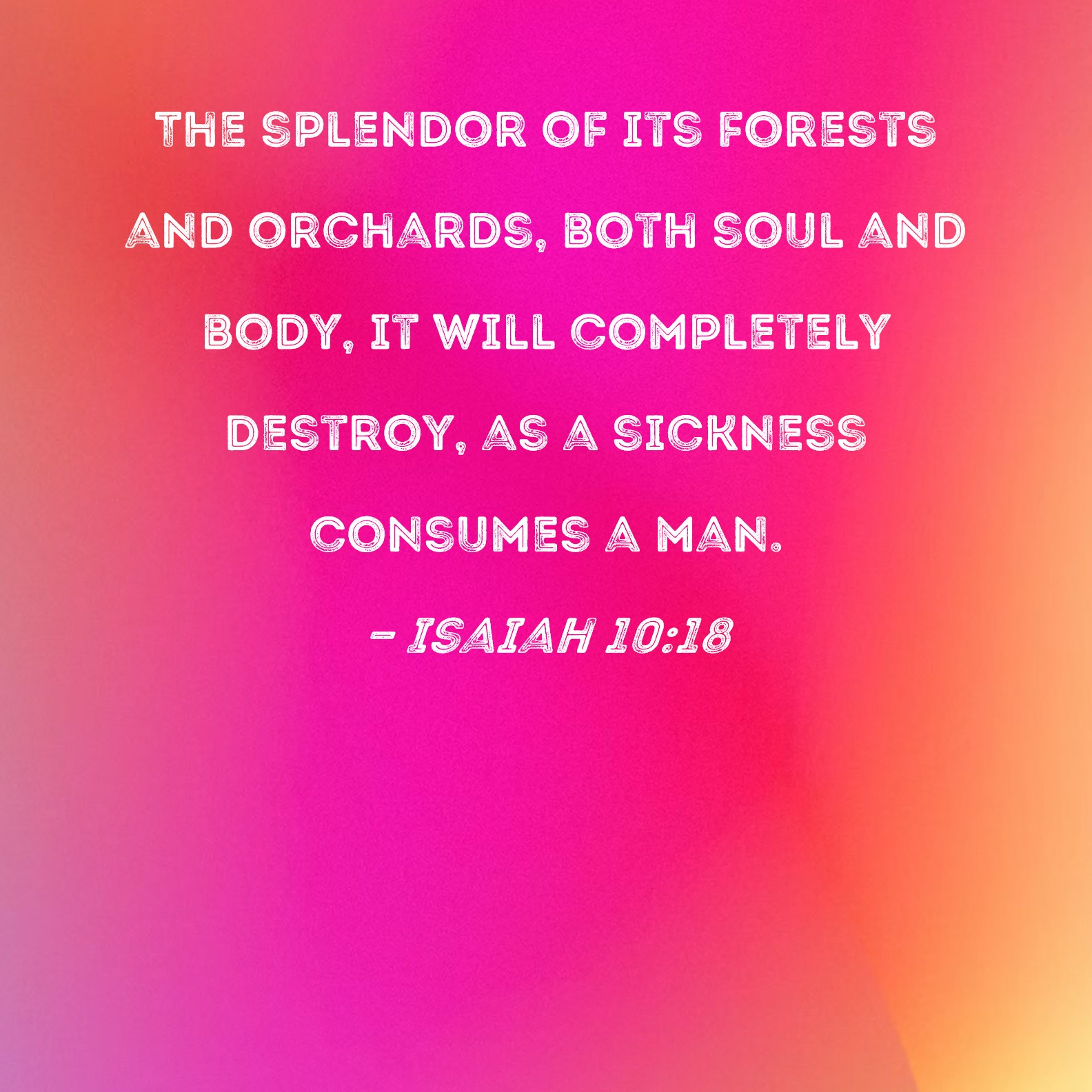 Isaiah 10:18 The splendor of its forests and orchards, both soul and body, it will completely destroy, as a sickness consumes a man.