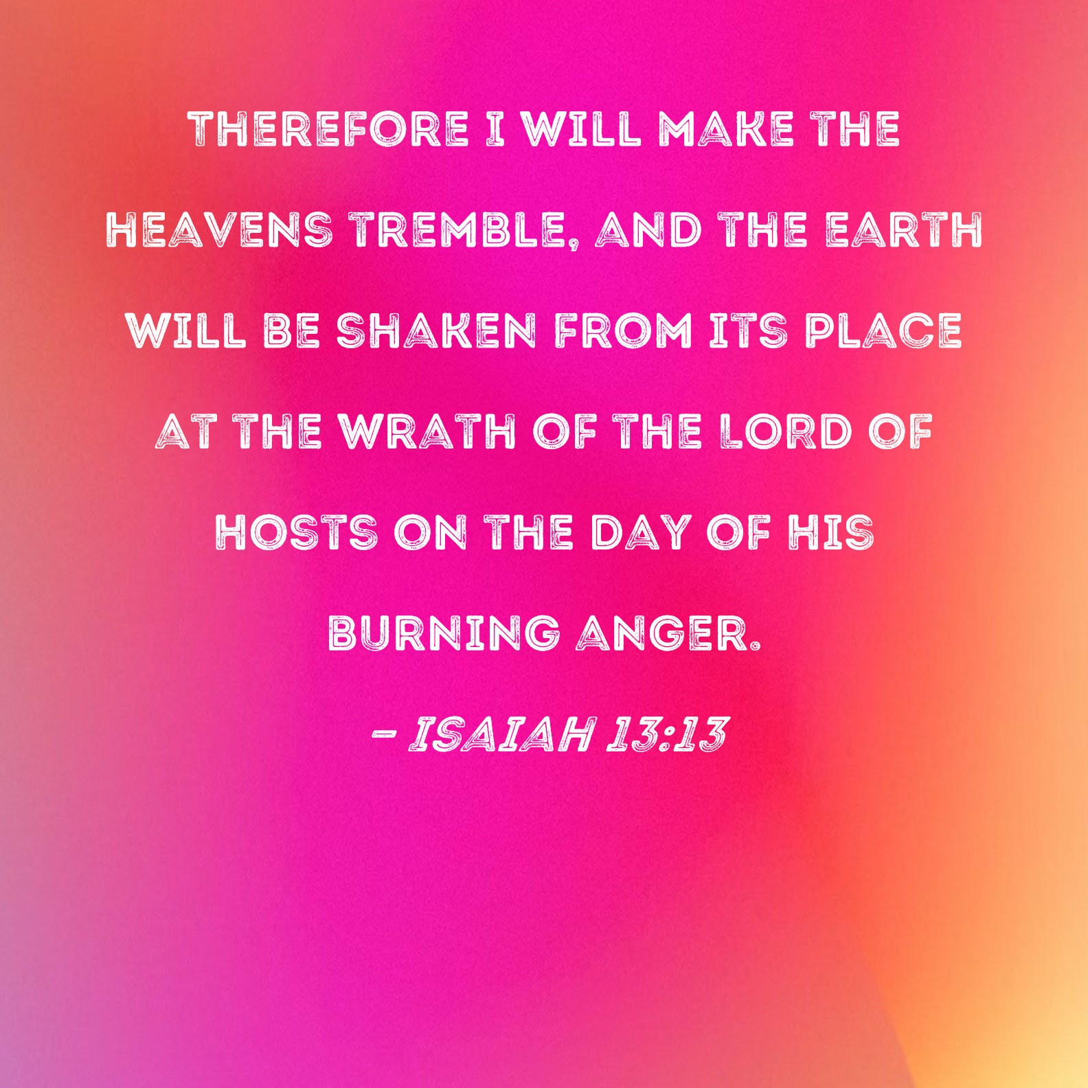 Isaiah 13:13 Therefore I will make the heavens tremble, and the earth will be shaken from its place at the wrath of the LORD of Hosts on the day of His burning anger.