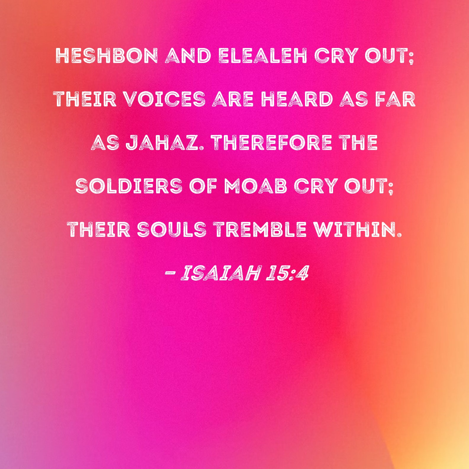 Isaiah 15:4 Heshbon and Elealeh cry out; their voices are heard as far as Jahaz. Therefore the soldiers of Moab cry out; their souls tremble within.