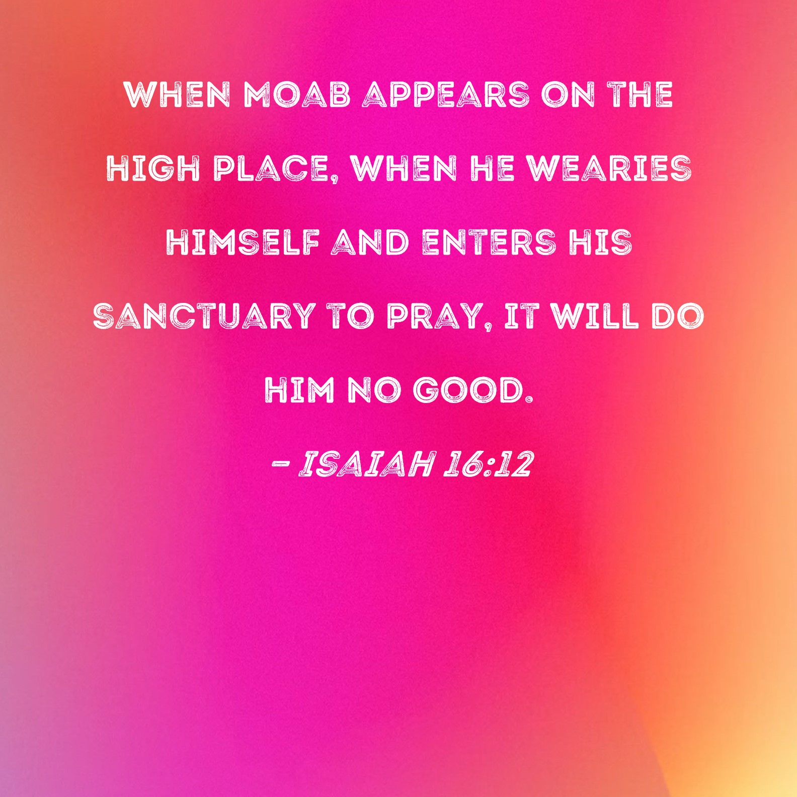 Isaiah 16:12 When Moab appears on the high place, when he wearies himself and enters his sanctuary to pray, it will do him no good.