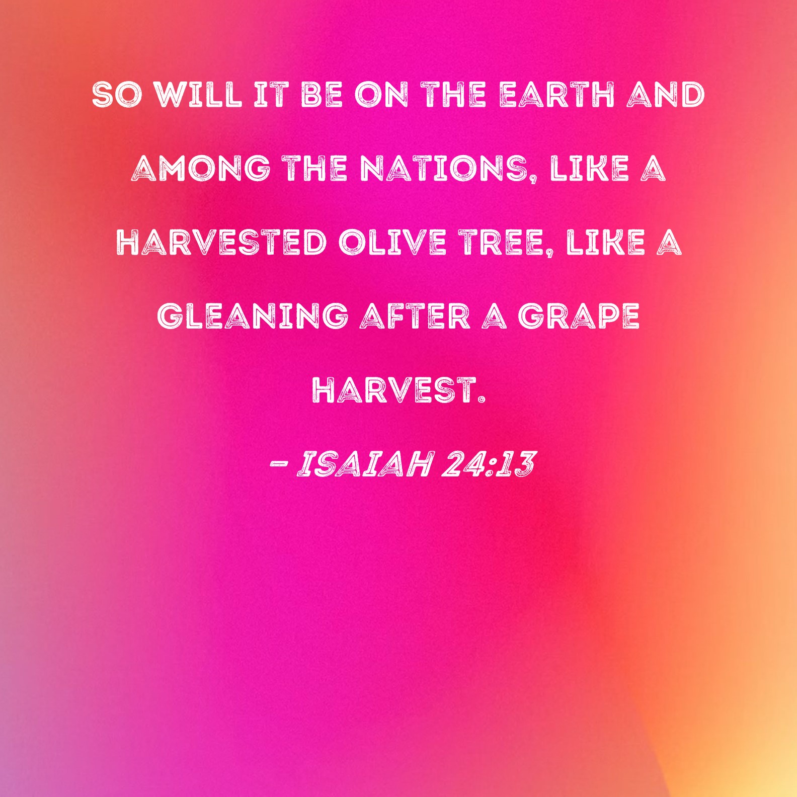 Isaiah 24:13 So will it be on the earth and among the nations, like a harvested olive tree, like a gleaning after a grape harvest.