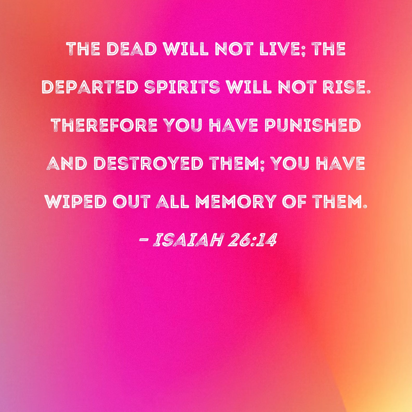 Isaiah 26:14 The dead will not live; the departed spirits will not rise. Therefore You have punished and destroyed them; You have wiped out all memory of them.
