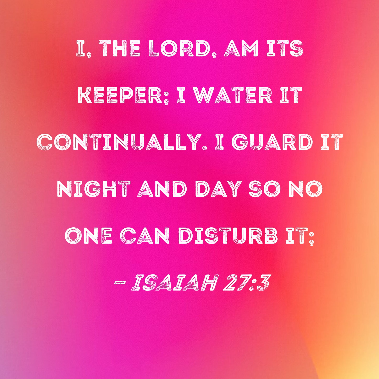Isaiah 27:3 I, the LORD, am its keeper; I water it continually. I guard it night and day so no one can disturb it;
