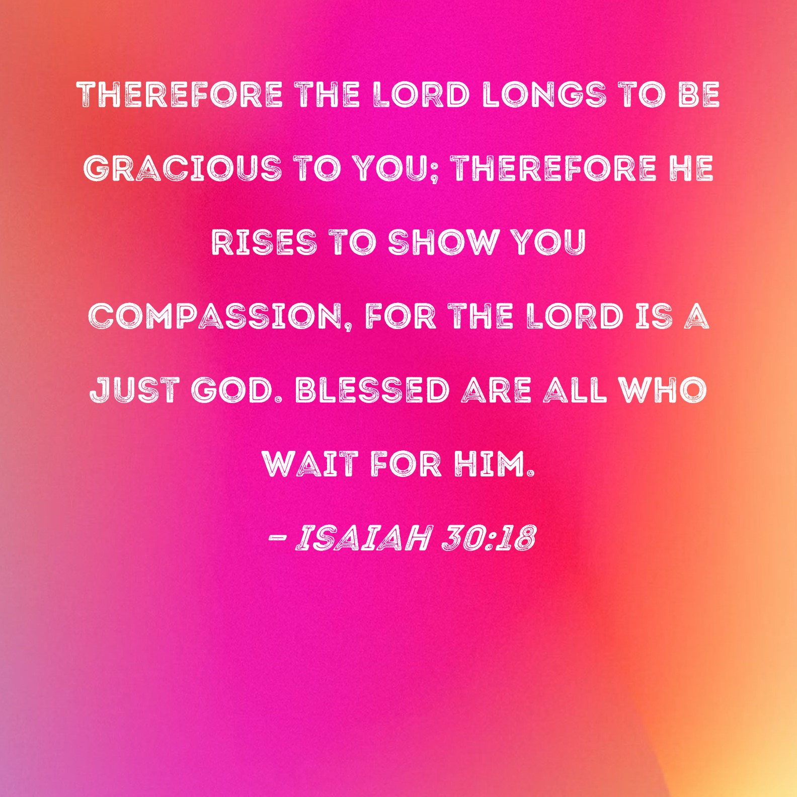 Isaiah 30:18 Therefore the LORD longs to be gracious to you; therefore He rises to show you compassion, for the LORD is a just God. Blessed are all who wait for Him.