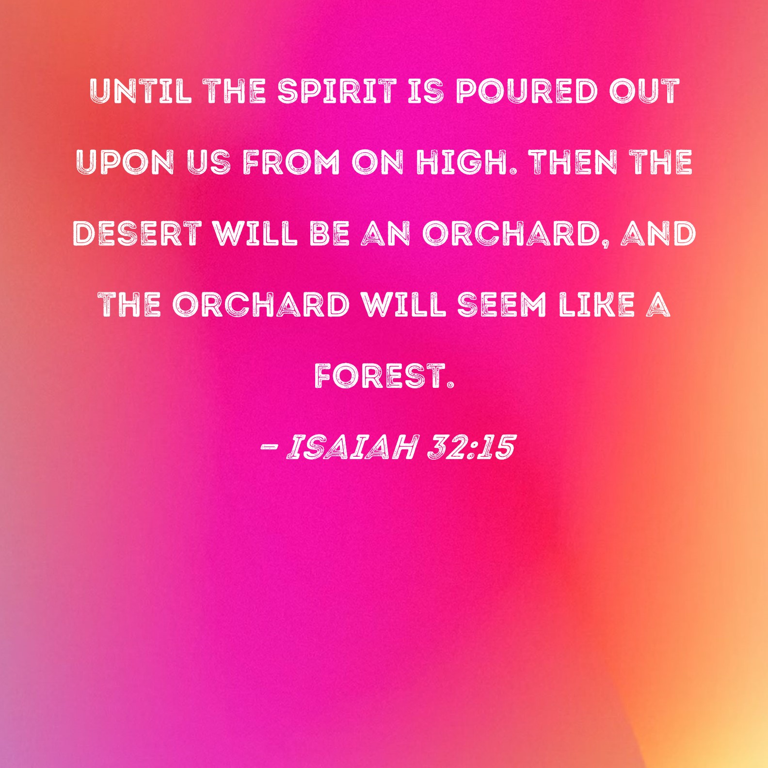 Isaiah 32:15 until the Spirit is poured out upon us from on high. Then the desert will be an orchard, and the orchard will seem like a forest.