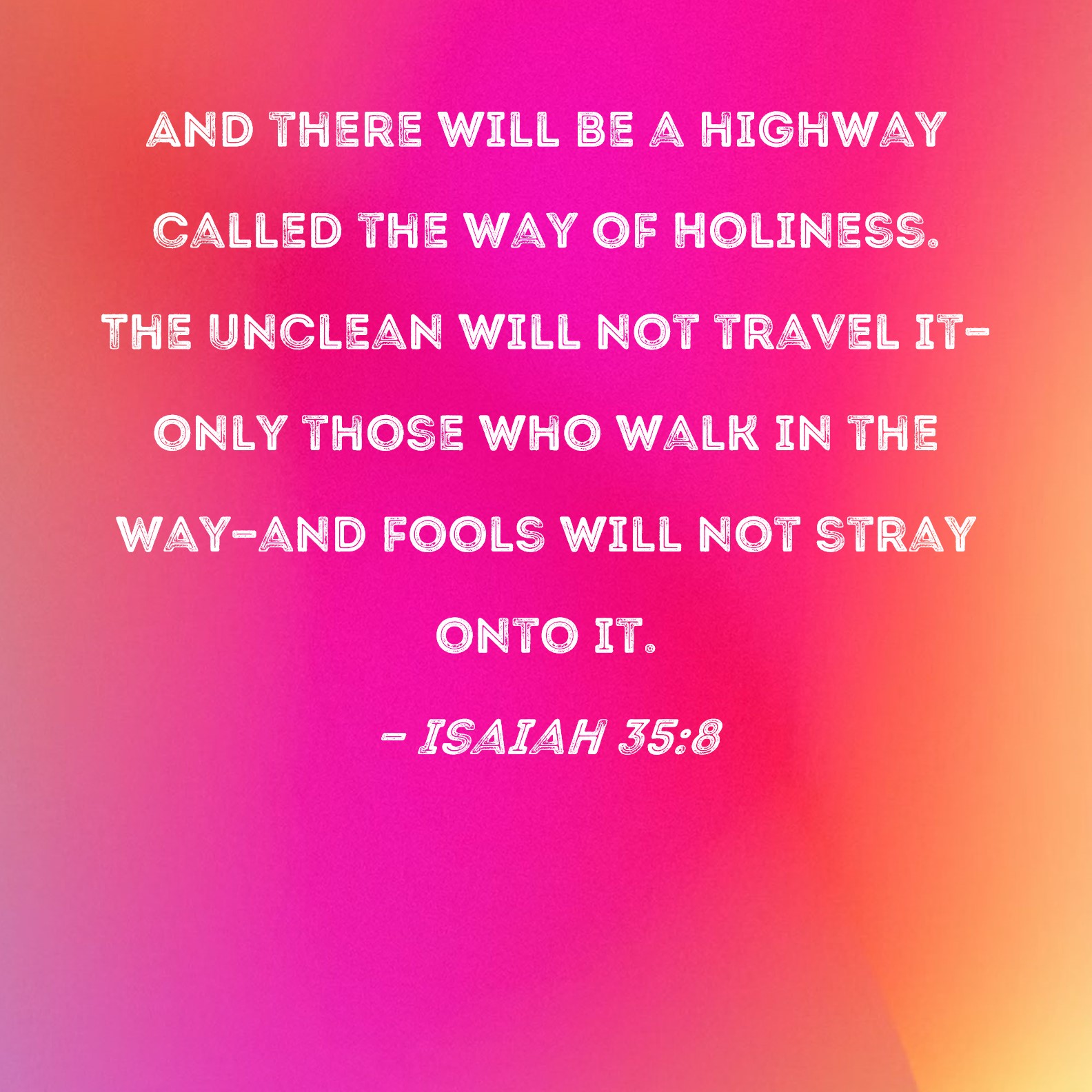 Isaiah 35:8 And there will be a highway called the Way of Holiness. The unclean will not travel it--only those who walk in the Way--and fools will not stray onto it.