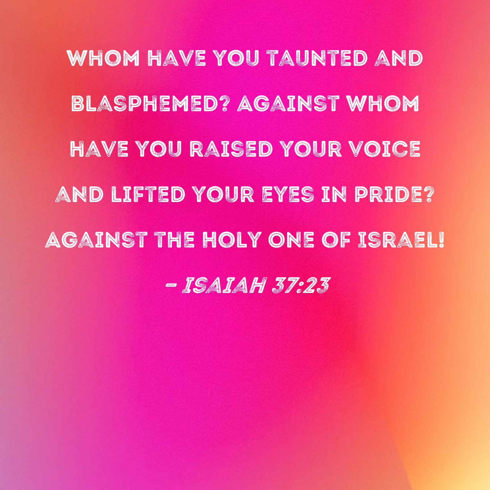 Isaiah 37:23 Whom have you taunted and blasphemed? Against whom have you raised your voice and lifted your eyes in pride? Against the Holy One of Israel!