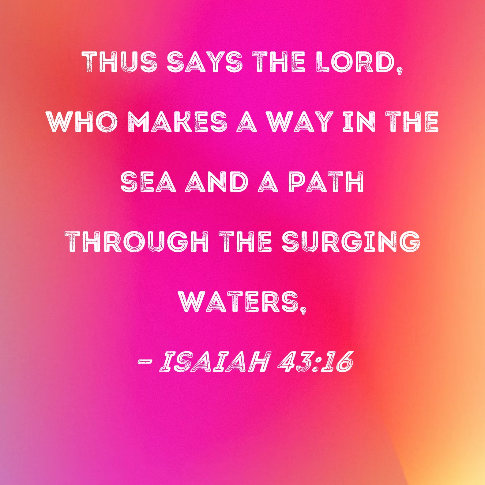 Isaiah 43:16 Thus says the LORD, who makes a way in the sea and a path through the surging waters,