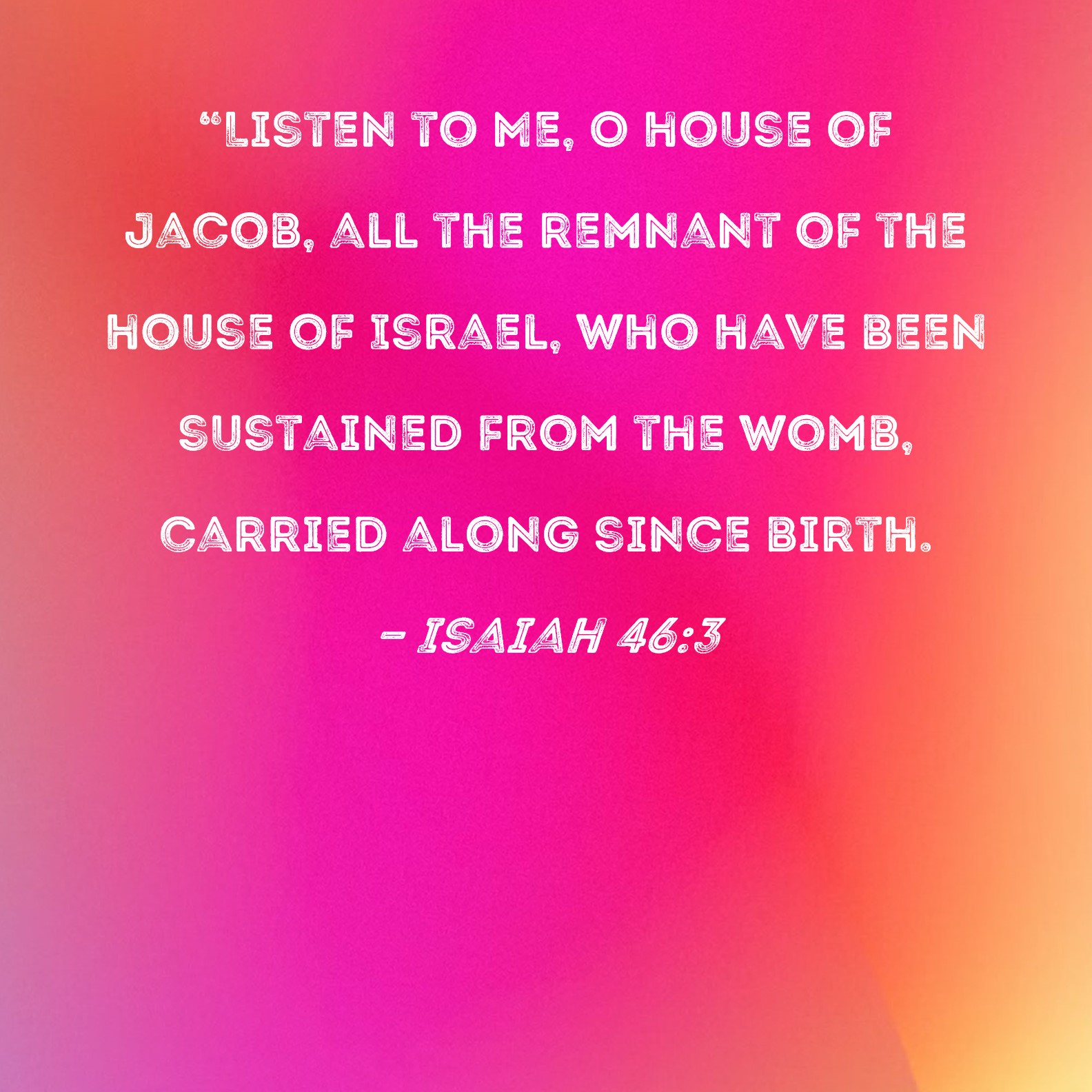 Isaiah 46:3 "Listen to Me, O house of Jacob, all the remnant of the house of Israel, who have been sustained from the womb, carried along since birth.