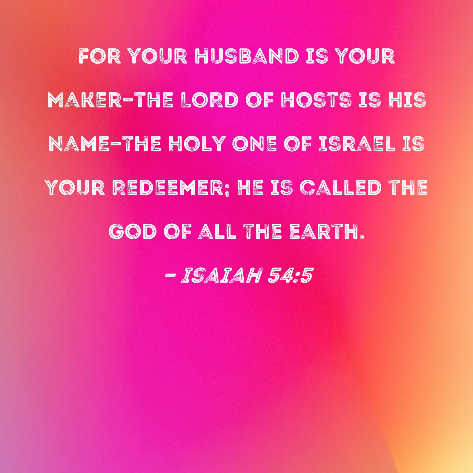 Isaiah 54:5 For your husband is your Maker--the LORD of Hosts is His name--the Holy One of Israel is your Redeemer; He is called the God of all the earth.