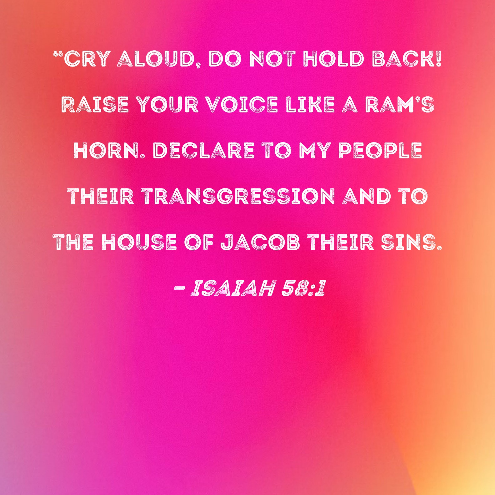 Isaiah 58:1 "Cry aloud, do not hold back! Raise your voice like a ram's horn. Declare to My people their transgression and to the house of Jacob their sins.