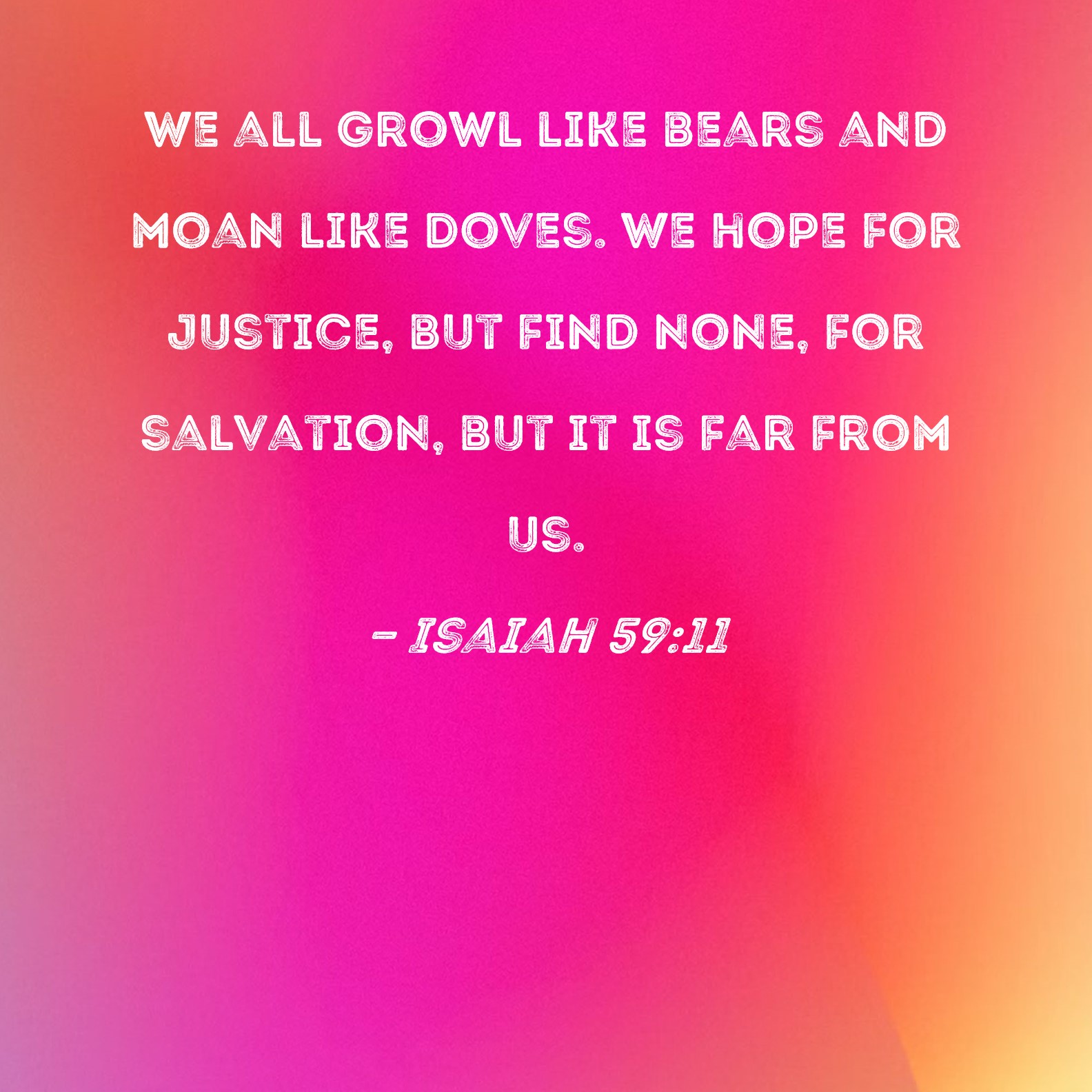 Isaiah 59:11 We all growl like bears and moan like doves. We hope for justice, but find none, for salvation, but it is far from us.